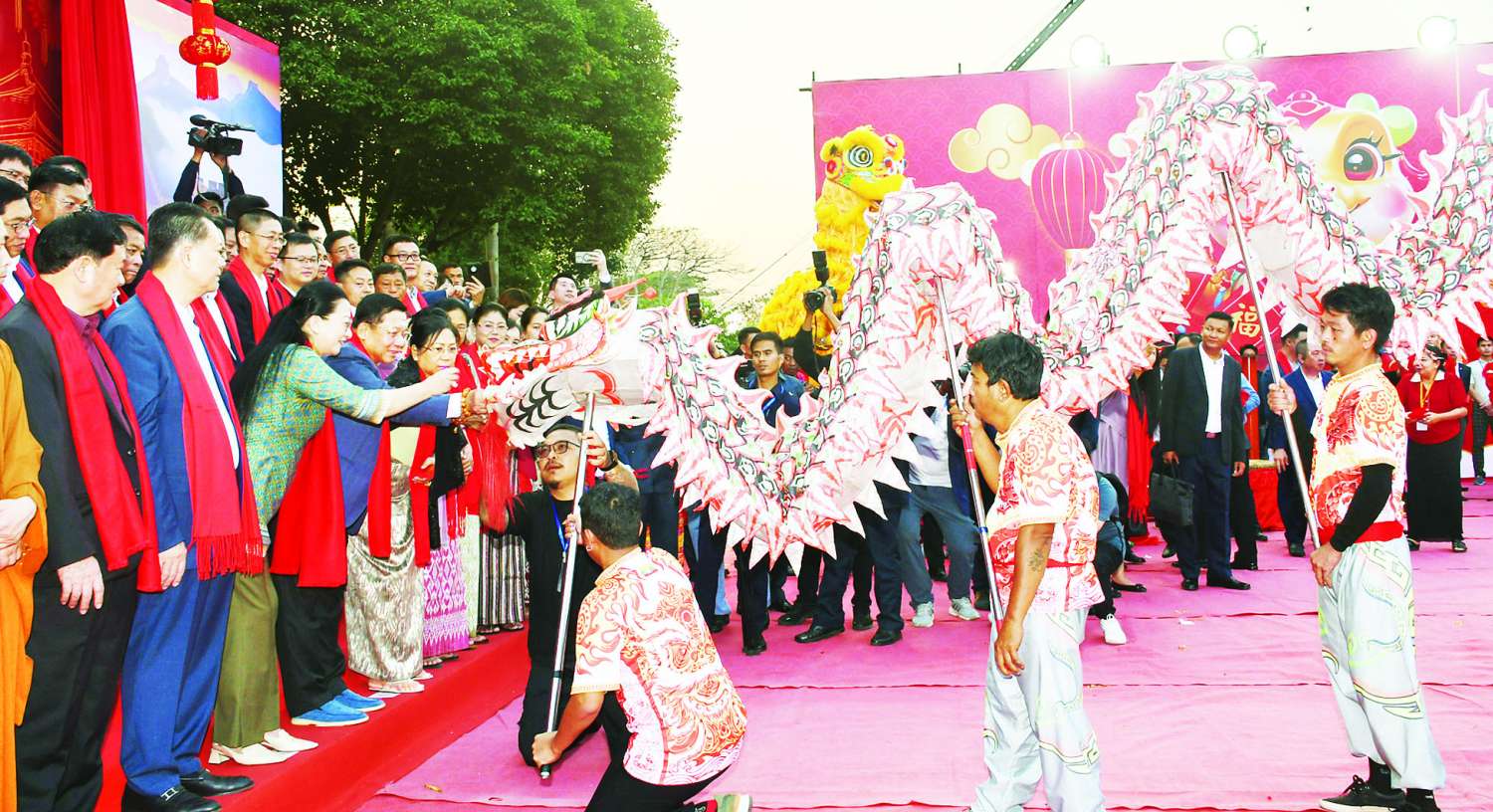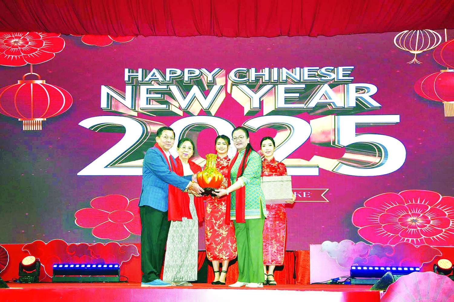 နိုင်ငံတော်စီမံအုပ်ချုပ်ရေးကောင်စီဥက္ကဋ္ဌ နိုင်ငံတော်ဝန်ကြီးချုပ် ဗိုလ်ချုပ်မှူးကြီး မင်းအောင်လှိုင်နှင့် ဇနီး ဒေါ်ကြူကြူလှ (၂ဝ၂၅) ခုနှစ်၊ မြွေနှစ် တရုတ်နှစ်သစ်ကူးပွဲတော်အခမ်းအနားသို့ တက်ရောက်ချီးမြှင့်
