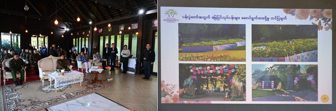 ပြည်ထောင်စုသမ္မတမြန်မာနိုင်ငံတော်ယာယီသမ္မတ နိုင်ငံတော်လုံခြုံရေးနှင့်အေးချမ်းသာယာရေးကော်မရှင်ဥက္ကဋ္ဌ ဗိုလ်ချုပ်မှူးကြီး မင်းအောင်လှိုင် ပြင်ဦးလွင်မြို့ အမျိုးသားကန်တော်ကြီးဥယျာဉ် ထိန်းသိမ်းဆောင်ရွက်ထားရှိမှုအခြေအနေများအား သွားရောက်ကြည့်ရှုစစ်ဆေး၊ ဒေသ၏ ရေခံမြေခံကောင်းများကို အကျိုးရှိစွာအသုံးချ၍ ပန်းမြို့တော်အင်္ဂါရပ်နှင့် ကိုက်ညီအောင် ဖော်ဆောင်သွားကြရမည်ဖြစ်