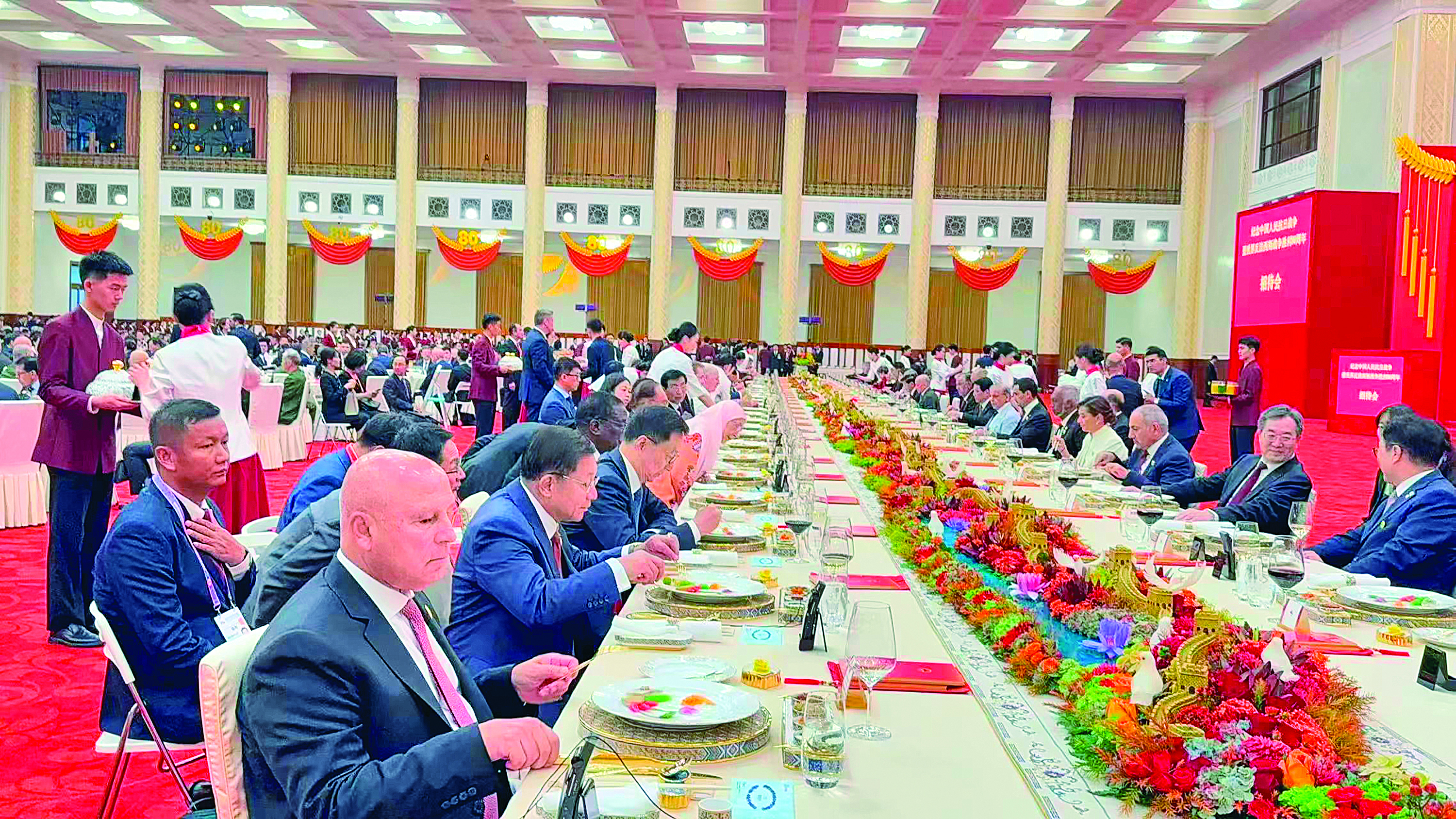 ယင်းနောက် ပြည်ထောင်စုသမ္မတမြန်မာနိုင်ငံတော်ယာယီသမ္မတ နိုင်ငံတော်လုံခြုံရေးနှင့်အေးချမ်းသာယာရေးကော်မရှင်ဥက္ကဋ္ဌ ဗိုလ်ချုပ်မှူးကြီး မင်းအောင်လှိုင်၊ နိုင်ငံတကာမှဖိတ်ကြားထားသည့် နိုင်ငံ့ခေါင်းဆောင်များသည် တရုတ်ပြည်သူ့သမ္မတနိုင်ငံ သမ္မတ H.E. Mr. Xi Jinping က တည်ခင်းဧည့်ခံသည့် ဂုဏ်ပြုနေ့လယ်စာစားပွဲသို့ တက်ရောက်ကြသည်။