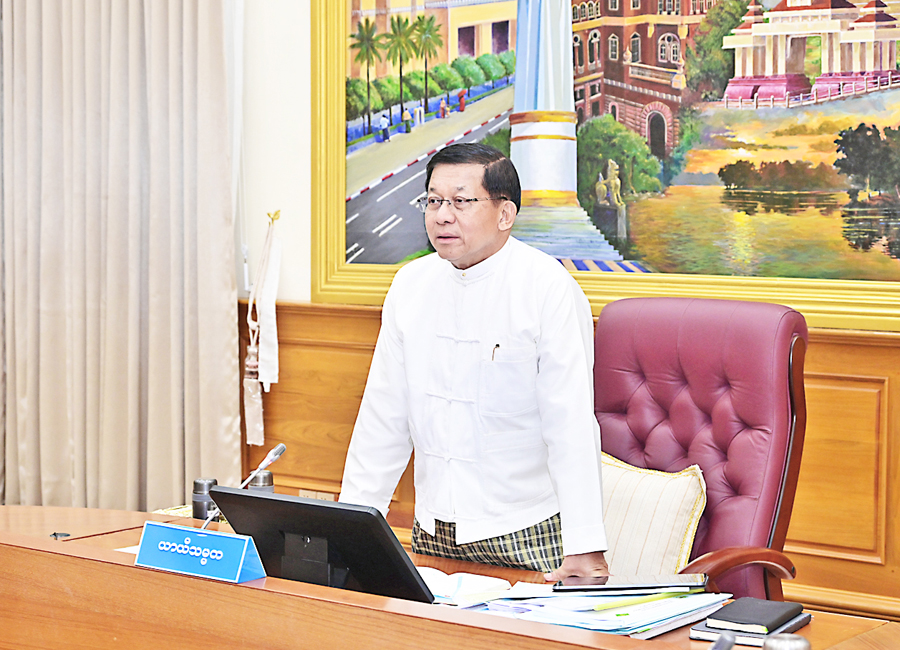 ပြည်ထောင်စုသမ္မတမြန်မာနိုင်ငံတော်ယာယီသမ္မတ နိုင်ငံတော်လုံခြုံရေးနှင့်အေးချမ်းသာယာရေးကော်မရှင်ဥက္ကဋ္ဌ ဗိုလ်ချုပ်မှူးကြီး မင်းအောင်လှိုင်သည် ပြည်ထောင်စုဝန်ကြီးများ၊ တိုင်းဒေသကြီး/ပြည်နယ်ဝန်ကြီးချုပ်များအား ယနေ့မွန်းလွဲပိုင်းတွင် တွေ့ဆုံအမှာစကားပြောကြားသည်။