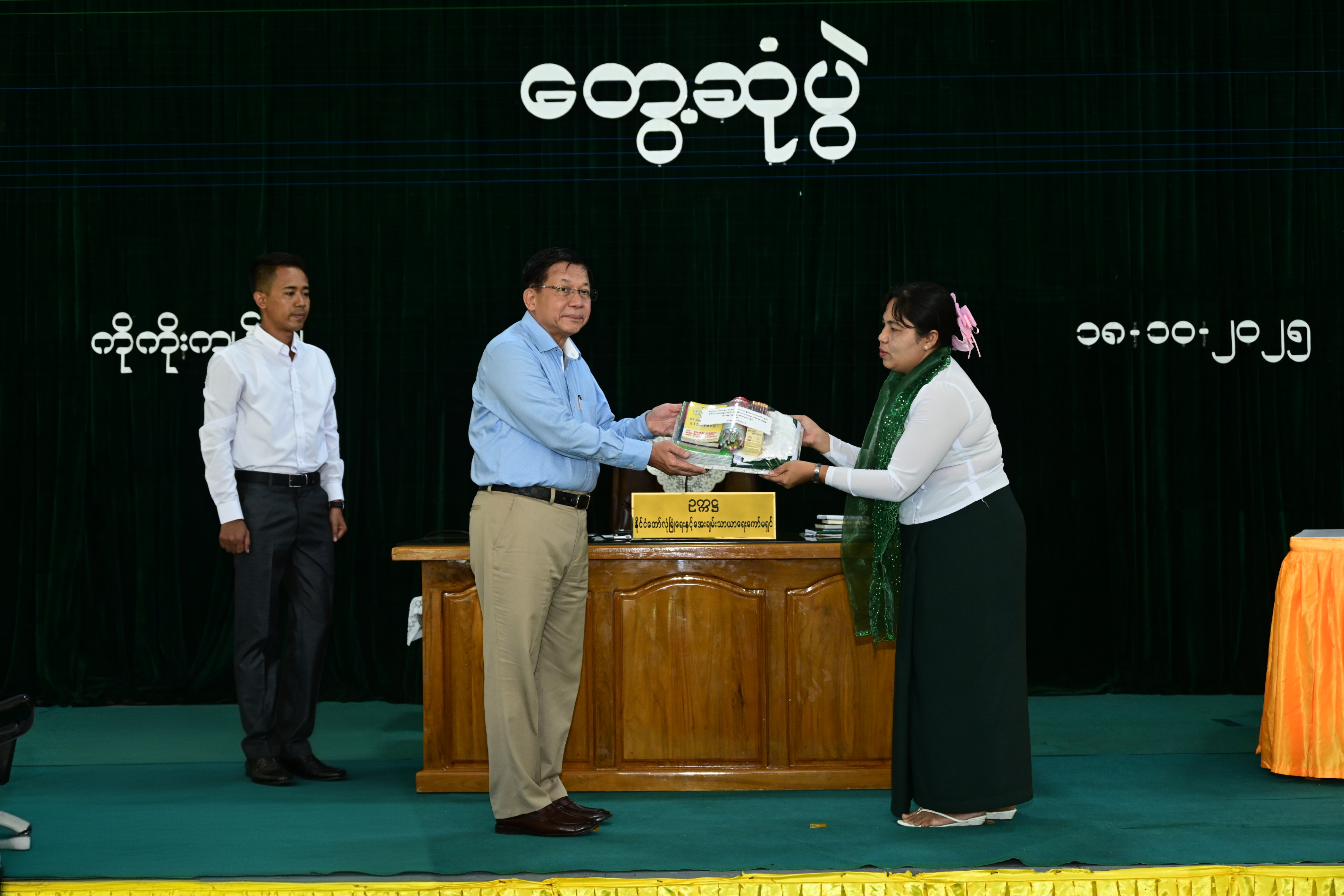 ထို့နောက် နိုင်ငံတော်ယာယီသမ္မတ နိုင်ငံတော်လုံခြုံရေးနှင့်အေးချမ်းသာယာရေးကော်မရှင်ဥက္ကဋ္ဌက ကိုကိုးကျွန်းမြို့ရှိ ဒေသခံပြည်သူများ၊ ဌာနဆိုင်ရာဝန်ထမ်းများအတွက် စားသောက်ဖွယ်ရာများကိုလည်းကောင်း၊ ကိုကိုးကျွန်းမြို့ အထက်တန်းကျောင်းအတွက် စာရေးကိရိယာများကိုလည်းကောင်း ပေးအပ်ရာ မြို့နယ်အုပ်ချုပ်ရေးမှူးနှင့် ကိုကိုးကျွန်းမြို့နယ်အထက်တန်းကျောင်းအုပ်ဆရာမကြီးက လက်ခံရယူသည်။
