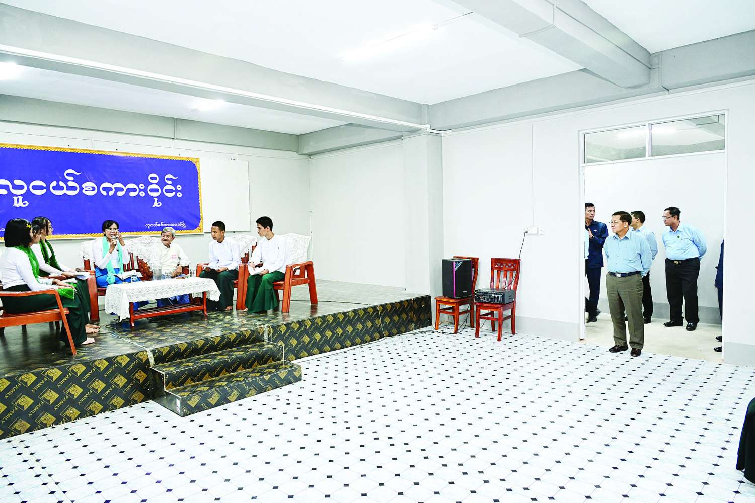 ထို့နောက် နိုင်ငံတော်ယာယီသမ္မတ နိုင်ငံတော်လုံခြုံရေးနှင့်အေးချမ်းသာယာရေးကော်မရှင်ဥက္ကဋ္ဌနှင့် အဖွဲ့ဝင်များသည် လူငယ်စင်တာအတွင်း လူငယ်များ Indoor Game များ လေ့ကျင့်နေမှု၊ လူငယ်စကားဝိုင်း ပြုလုပ်နေမှု၊ အိမ်တွင်းမှုလုပ်ငန်းများ သင်ကြားဆောင်ရွက်နေမှု၊ ဂီတခန်းအတွင်း ဂီတပညာများသင်ကြားပေးနေမှု၊ ပန်းချီသင်တန်း သင်ကြားပို့ချပေးနေမှု၊ ကွန်ပျူတာနည်းပညာများ သင်ကြားပြသပေးနေမှု၊ စာကြည့်တိုက်အတွင်း လူငယ်များစာပေဖတ်ရှုလေ့လာနေမှုများနှင့် အိပ်ခန်းများနှင့် စားသောက်ခန်းတို့အတွင်း လှည့်လည်ကြည့်ရှုစစ်ဆေးပြီး တာဝန်ရှိသူများ၏ တင်ပြချက်များအပေါ် လိုအပ်သည်များ လမ်းညွှန်မှာကြားသည်။