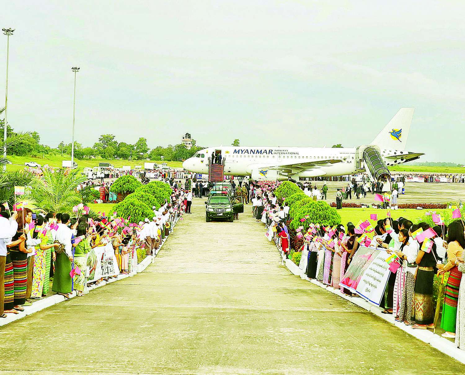 ပြည်ထောင်စုသမ္မတမြန်မာနိုင်ငံတော်ယာယီသမ္မတ နိုင်ငံတော်လုံခြုံရေးနှင့်အေးချမ်းသာယာရေးကော်မရှင်ဥက္ကဋ္ဌ ဗိုလ်ချုပ်မှူးကြီး မင်းအောင်လှိုင် ဦးဆောင်သည့် မြန်မာအဆင့်မြင့်ကိုယ်စားလှယ်အဖွဲ့သည် ယနေ့ (စက်တင်ဘာ ၆ ရက်) ညနေပိုင်း ၅ နာရီ ၄၅ မိနစ်တွင် နေပြည်တော်လေဆိပ်သို့ ပြန်လည်ရောက်ရှိပါသည်။