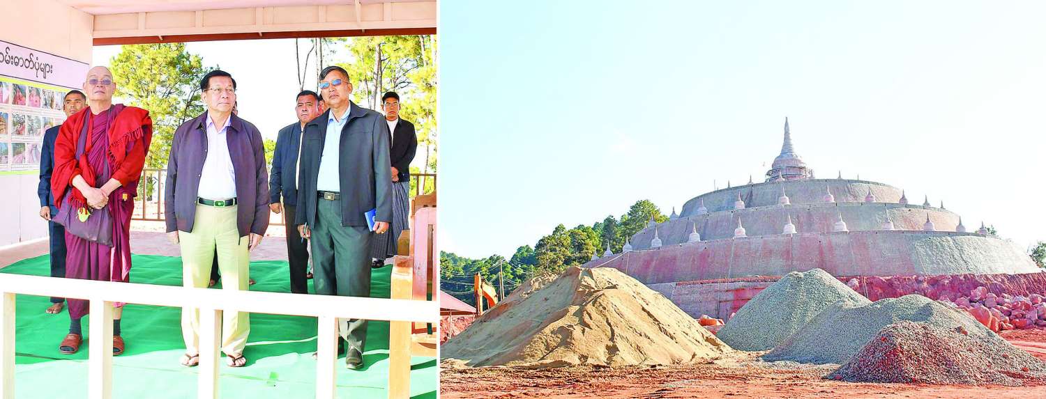 ထို့နောက် နိုင်ငံတော်ယာယီသမ္မတ နိုင်ငံတော်လုံခြုံရေးနှင့်အေးချမ်းသာယာရေးကော်မရှင်ဥက္ကဋ္ဌသည် စေတီတော်ကြီးတည်ဆောက်ရေးလုပ်ငန်းခွင်အတွင်း လှည့်လည်ကြည့်ရှုပြီး လိုအပ်သည်များ လမ်းညွှန်မှာကြားသည်။