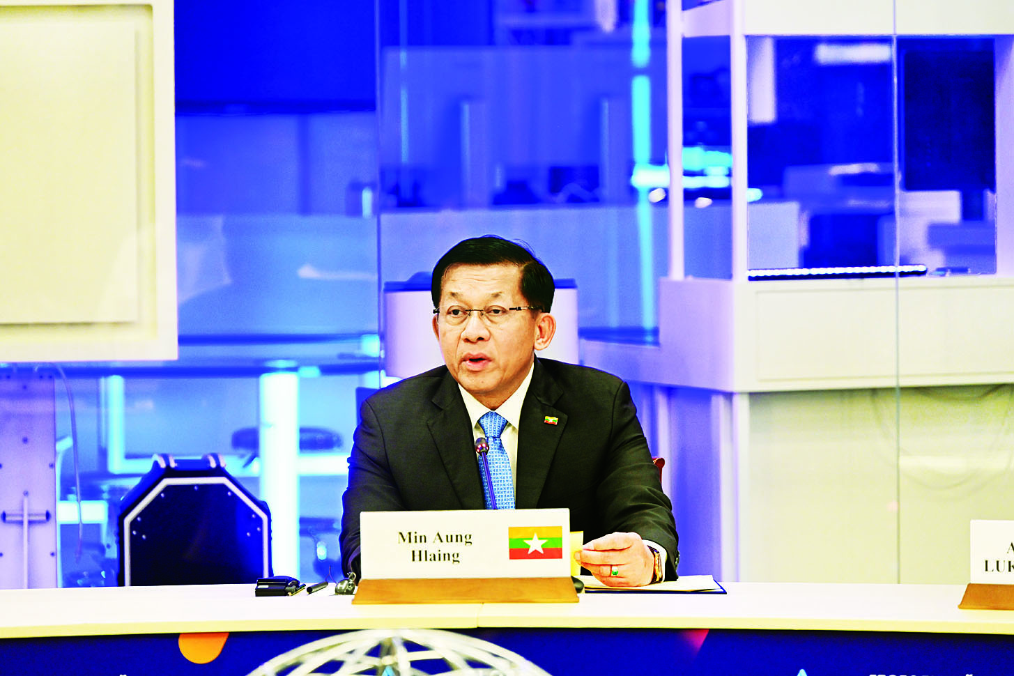 ပြည်ထောင်စုသမ္မတမြန်မာနိုင်ငံတော်ယာယီသမ္မတ နိုင်ငံတော်လုံခြုံရေးနှင့်အေးချမ်းသာယာရေးကော်မရှင်ဥက္ကဋ္ဌ ဗိုလ်ချုပ်မှူးကြီး မင်းအောင်လှိုင် ရုရှားဖက်ဒရေးရှင်းနိုင်ငံ မော်စကိုမြို့တွင် ကျင်းပပြုလုပ်သည့် “ကမ္ဘာ့အဏုမြူသီတင်းပတ်ဖိုရမ် -၂ဝ၂၅” ၏ မျက်နှာစုံညီ ထိပ်သီးအစည်းအဝေးသို့ ပါဝင်တက်ရောက်