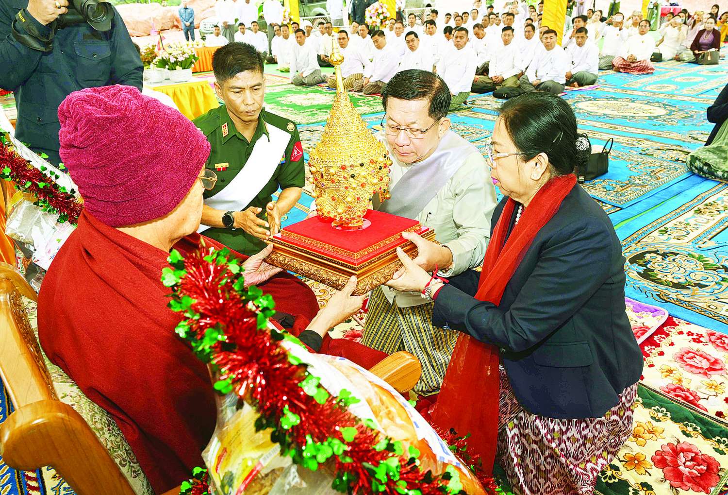 အခမ်းအနားများအပြီးတွင် နိုင်ငံတော်စီမံအုပ်ချုပ်ရေးကောင်စီဥက္ကဋ္ဌ နိုင်ငံတော်ဝန်ကြီးချုပ်နှင့် ဇနီး၊ အခမ်းအနားတက်ရောက်လာကြသူများသည် ဆရာတော်၊ သံဃာတော်များအား နေ့ဆွမ်းဆက်ကပ်လှူဒါန်းခဲ့ကြကြောင်း သတင်းရရှိသည်။