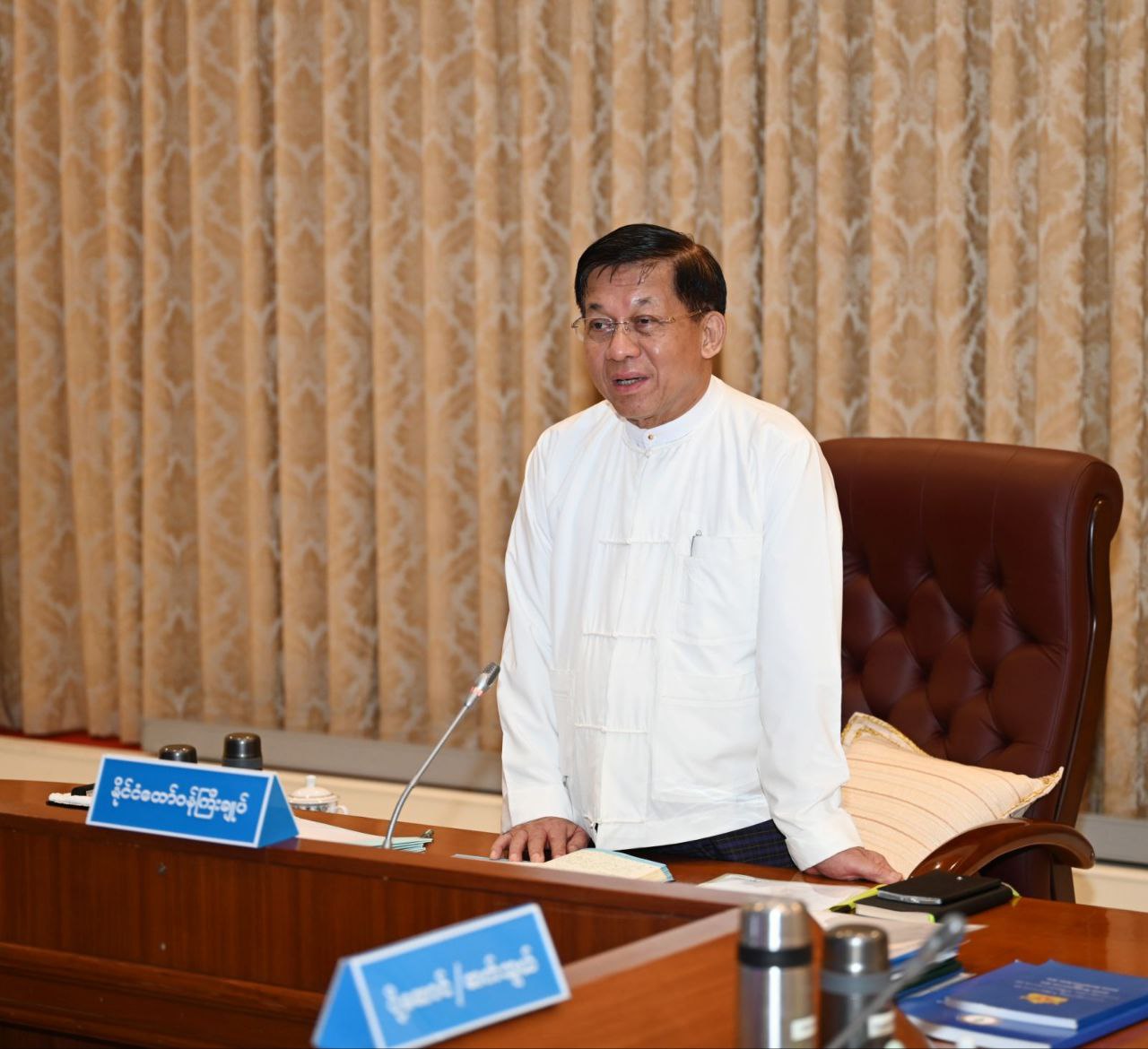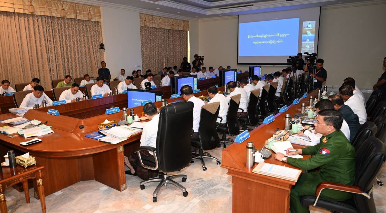 သဘာဝဘေးအန္တရာယ်စီမံခန့်ခွဲမှုဆိုင်ရာ အစည်းအဝေးကို ယနေ့မွန်းလွဲပိုင်းတွင် နိုင်ငံတော်စီမံအုပ်ချုပ်ရေးကောင်စီဥက္ကဋ္ဌရုံး၊ အစည်းအဝေးခန်းမ၌ ကျင်းပပြုလုပ်ရာ နိုင်ငံတော်စီမံအုပ်ချုပ်ရေးကောင်စီဥက္ကဋ္ဌ နိုင်ငံတော်ဝန်ကြီးချုပ် ဗိုလ်ချုပ်မှူးကြီး မင်းအောင်လှိုင် တက်ရောက်ဆွေးနွေး၍ လိုအပ်သည်များ မှာကြားသည်။