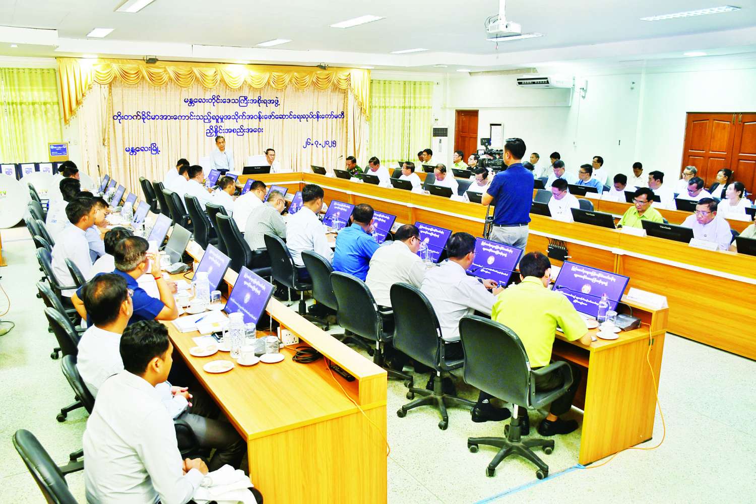ဆက်လက်၍ မန္တလေးတိုင်းဒေသကြီး အစိုးရအဖွဲ့အတွင်းရေးမှူး၊ ရမည်းသင်းခရိုင် အုပ်ချုပ်ရေးမှူး၊ တိုင်းဒေသကြီး စီးပွားရေးရာဝန်ကြီး၊ သယံဇာတရေးရာဝန်ကြီးနှင့် စည်ပင်သာယာရေးဝန်ကြီးတို့က ကဏ္ဍအလိုက် ဆွေးနွေးတင်ပြကြသည်။