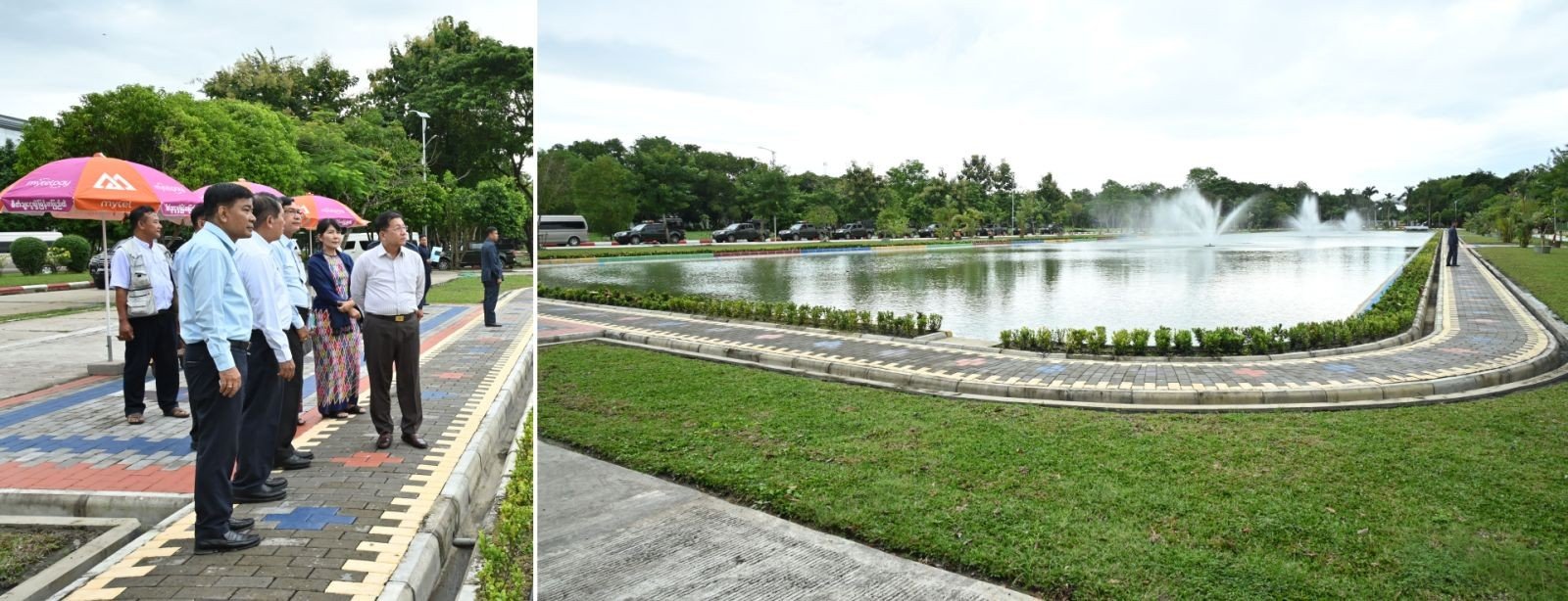 On arrival at Western Yangon University, the Senior General inspected the dredging of a lake with 665 feet in length, 110 feet in width and five feet in depth in front of the four-storey main lecture building, greening landscaping around the lake, filling water into the lake and installation of water foundations with the use of solar power, paving the pedestrian along the bund, and beautification process in the university. The Yangon Region chief minister, the Yangon mayor and the rector of the university explained all work processes to the Senior General.