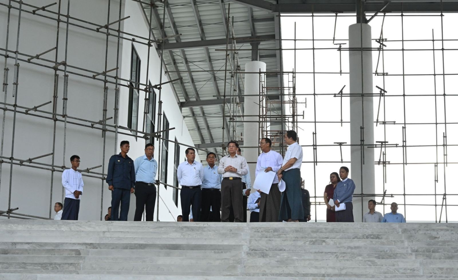 At Western Yangon Technological University, the Senior General and party inspected the progress of the new lecture hall on the campus.