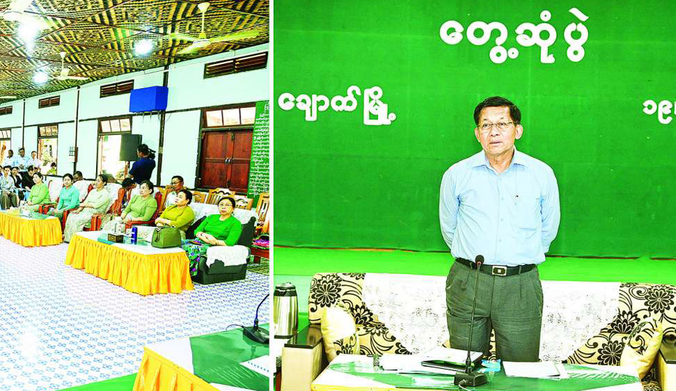 Chairman of the State Security and Peace Commission of the Republic of the Union of Myanmar Senior General Min Aung Hlaing meets departmental officials and town elders in Chauk
