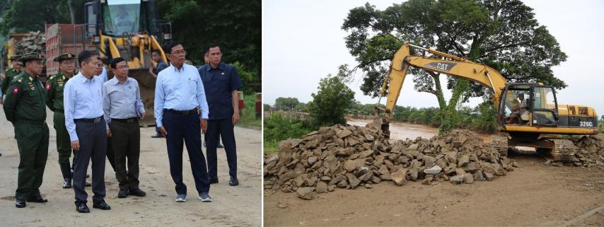 Roads and bridges damaged by flash flooding are repaired in Nay Pyi Taw Council Area. At present, the inter-district road between Tatkon and Pyinmana townships is used to transport relief supplies and other goods so they are not delayed.