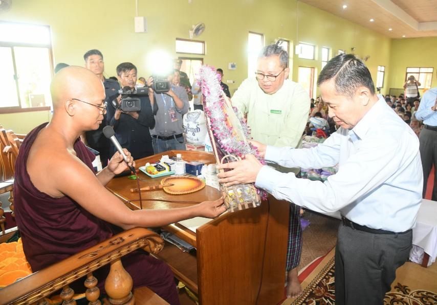 He also met some 500 flood-stricken people from flood-ravaged villages at Chanmyae Yeiktha Monastery in Tatkon Township and explained plans to provide aid for rehabilitation.