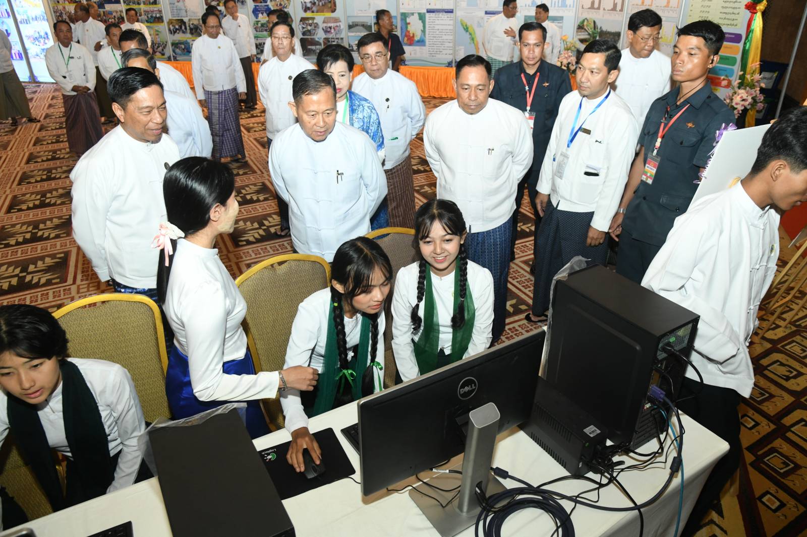 SAC member General Mya Tun Oo, Vice-Chairmen of the management committee Union Ministers Lt-Gen Yar Pyae and Dr Soe Win also awarded the winners in the university-level painting and basic education-level essay contests.