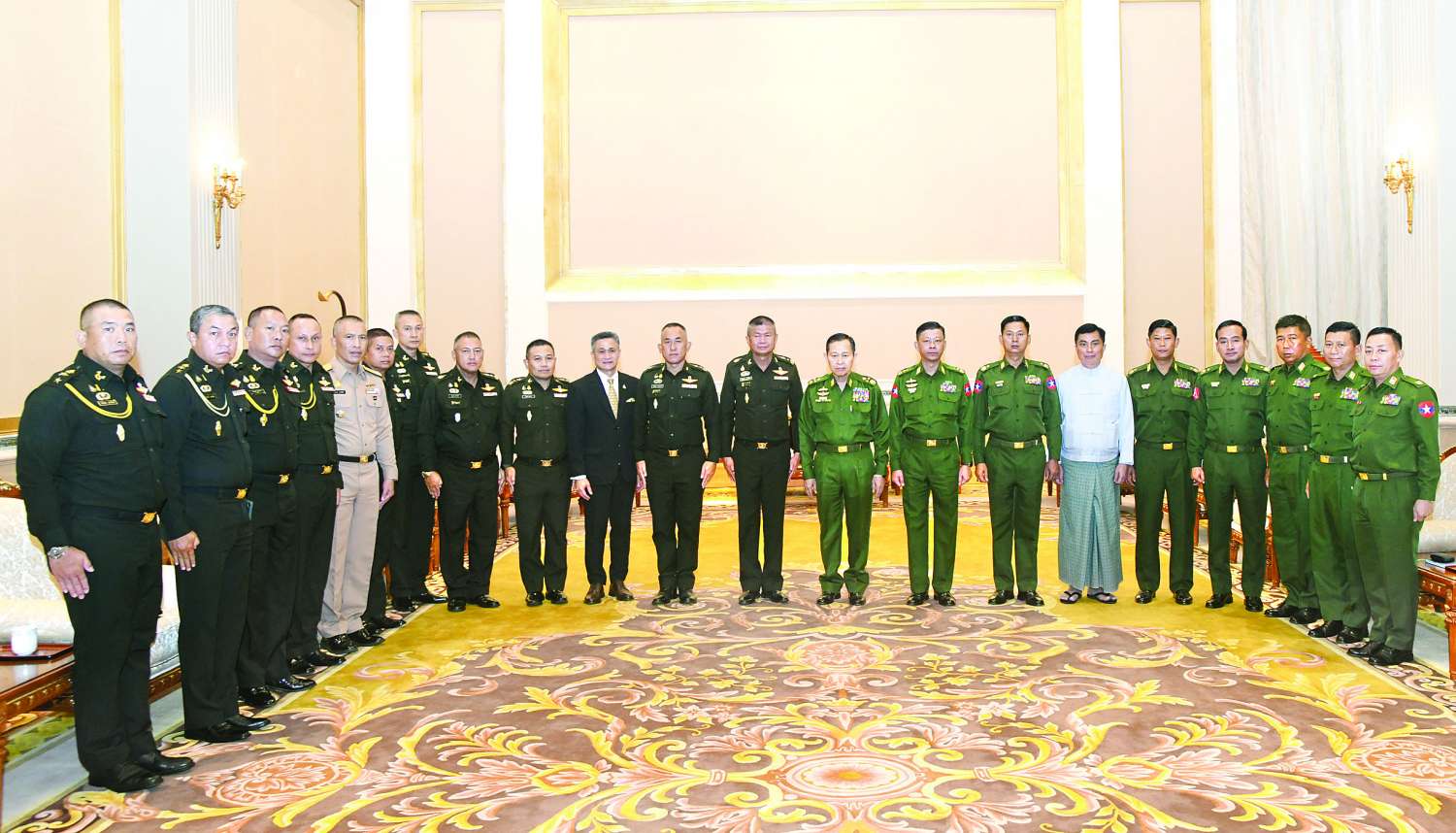 Also present at the meeting were Lt-Gen Nyunt Win Swe from the Office of the Commander-in-Chief (Army), senior Tatmadaw officers, Myanmar Ambassador to Thailand U Chit Swe, Thai Ambassador to Myanmar Mr Mongkol Visitstump, and senior military officers from the Royal Thai Armed Forces.
