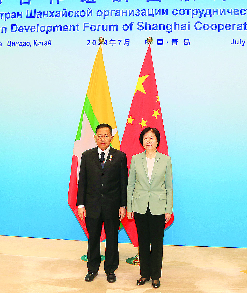 In the evening, the Myanmar delegation led by the Vice-Senior General together with delegates to the forum was hosted dinner by the Vice Chairwoman of the National Committee of the Chinese People’s Political Consultative Conference and President of Good-Neighbourliness, Friendship and Cooperation Commission of the Shanghai Cooperation Organization at Yellow River Hall of Qingdao International Conference Centre.