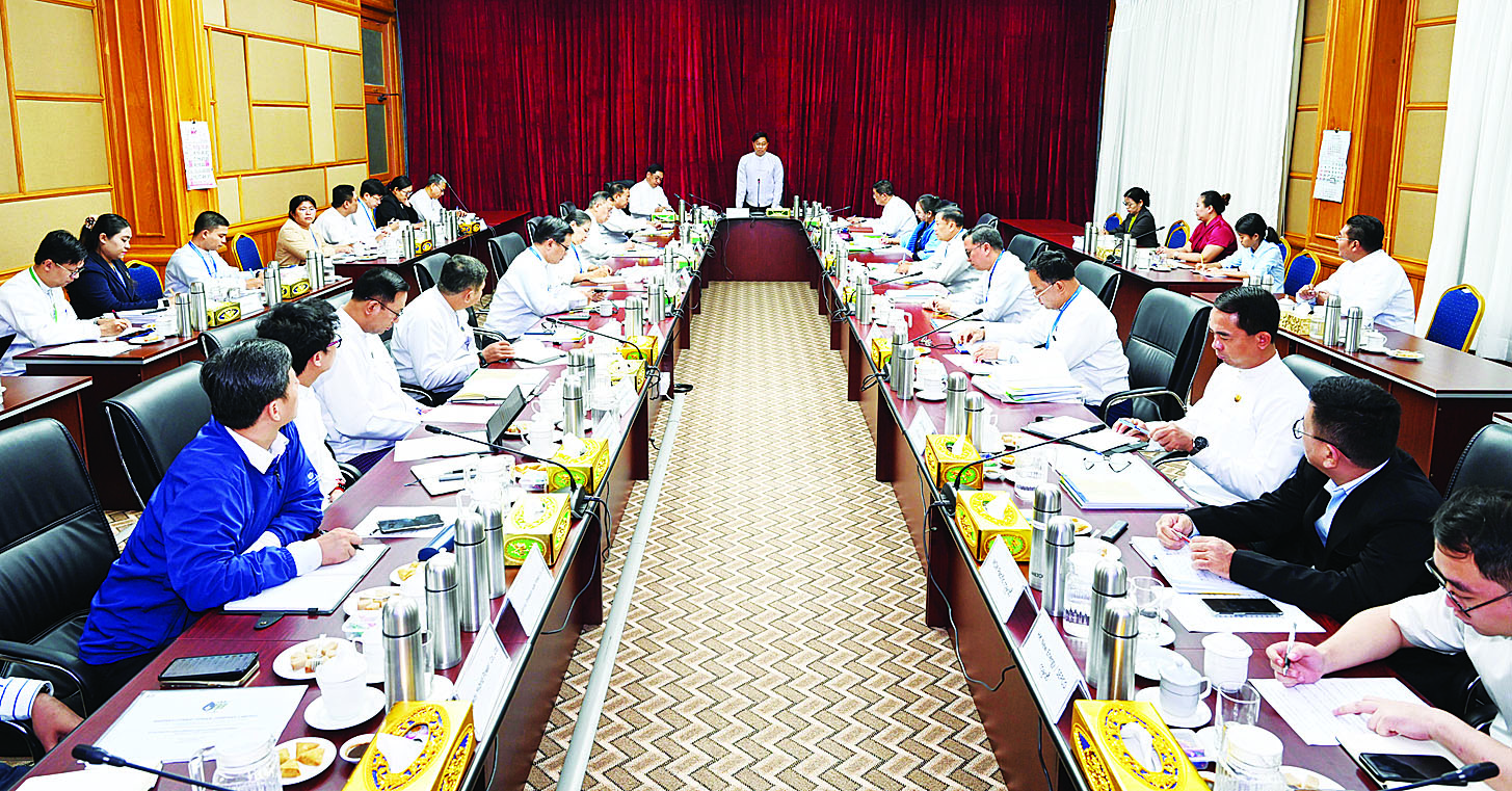 Chairman of the Electric Power and Energy Development Commission State Administration Council Member Deputy Prime Minister and Union Minister at the Prime Minister Office Admiral Tin Aung San delivered a speech at the Electric Power and Energy Development Commission’s meeting at the SAC Office in Nay Pyi Taw yesterday afternoon.