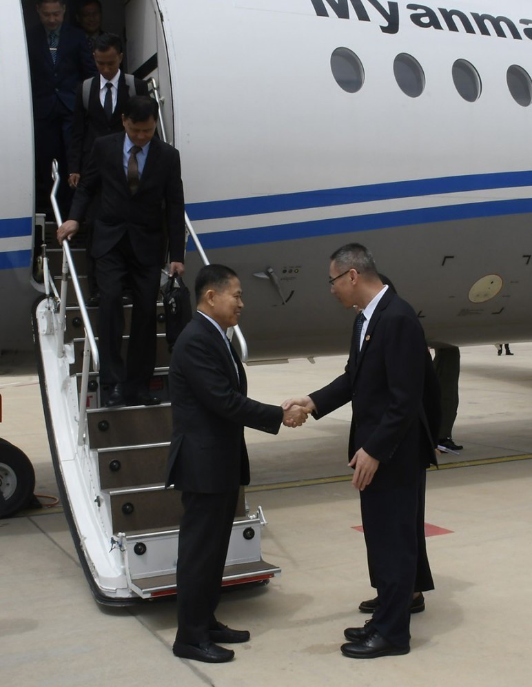 The Myanmar delegation led by the Vice-Senior General arrived at Kunming Airport at 11:15 am Local Standard Time. Director-General Mr Zhang Shijin of the Ministry of Foreign Affairs of the Yunnan Provincial Government, Kunming Consul-General U Thwin Htet Lin and officials welcomed them.