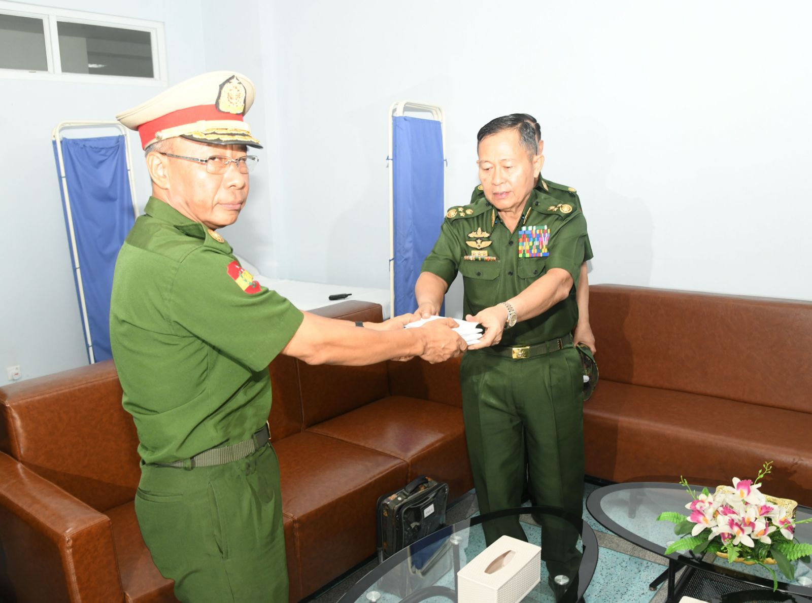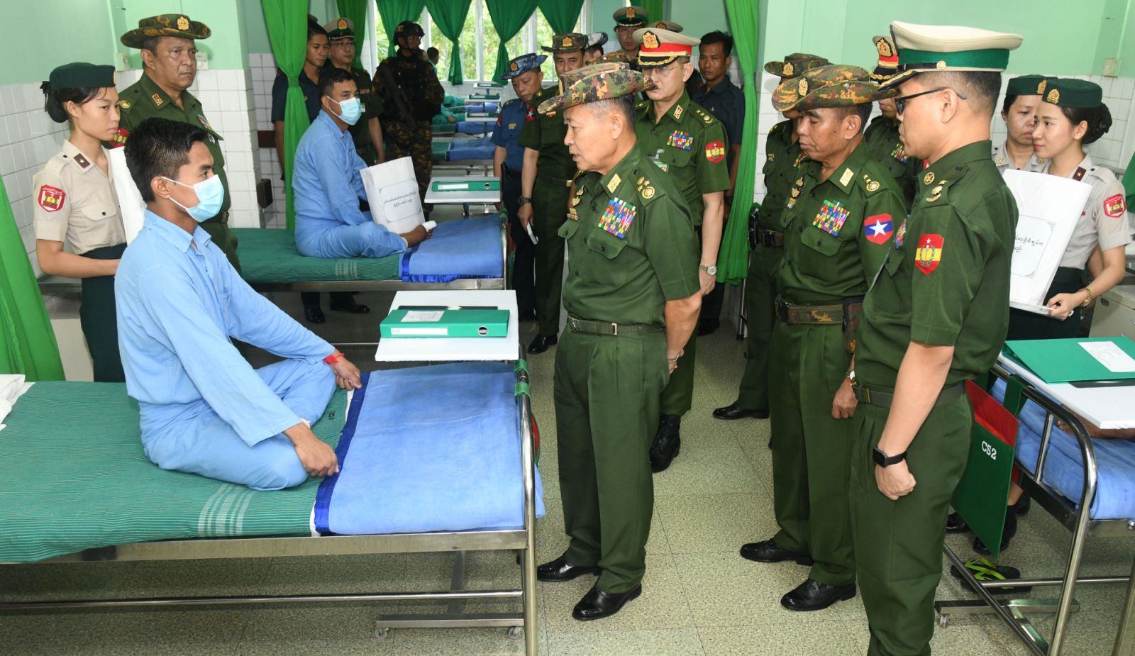 Vice-Chairman of the State Administration Council Deputy Commander-in-Chief of Defence Services Commander-in-Chief (Army) Vice-Senior General Soe Win comforted Tatmadaw members and families receiving medical treatments at Defence Services Orthopaedic Hospital (500-bed) and the special care centre units of Defence Services General Hospital (1,000-bed) in Mingaladon Township, Yangon Region, yesterday morning.