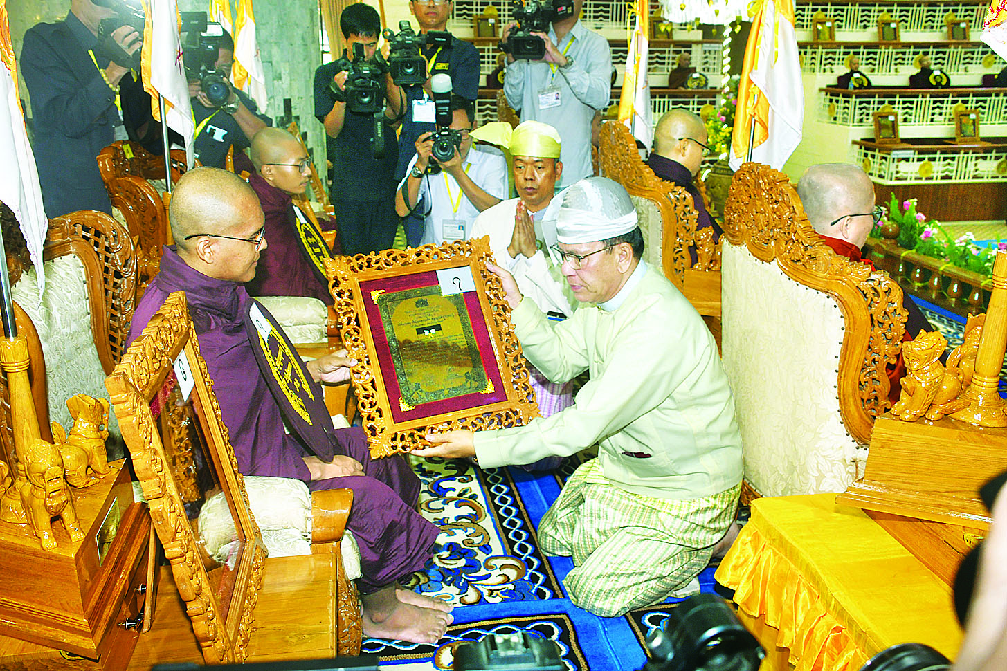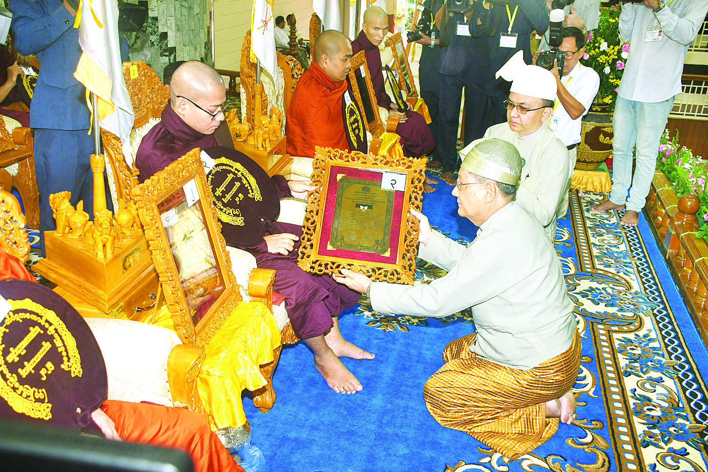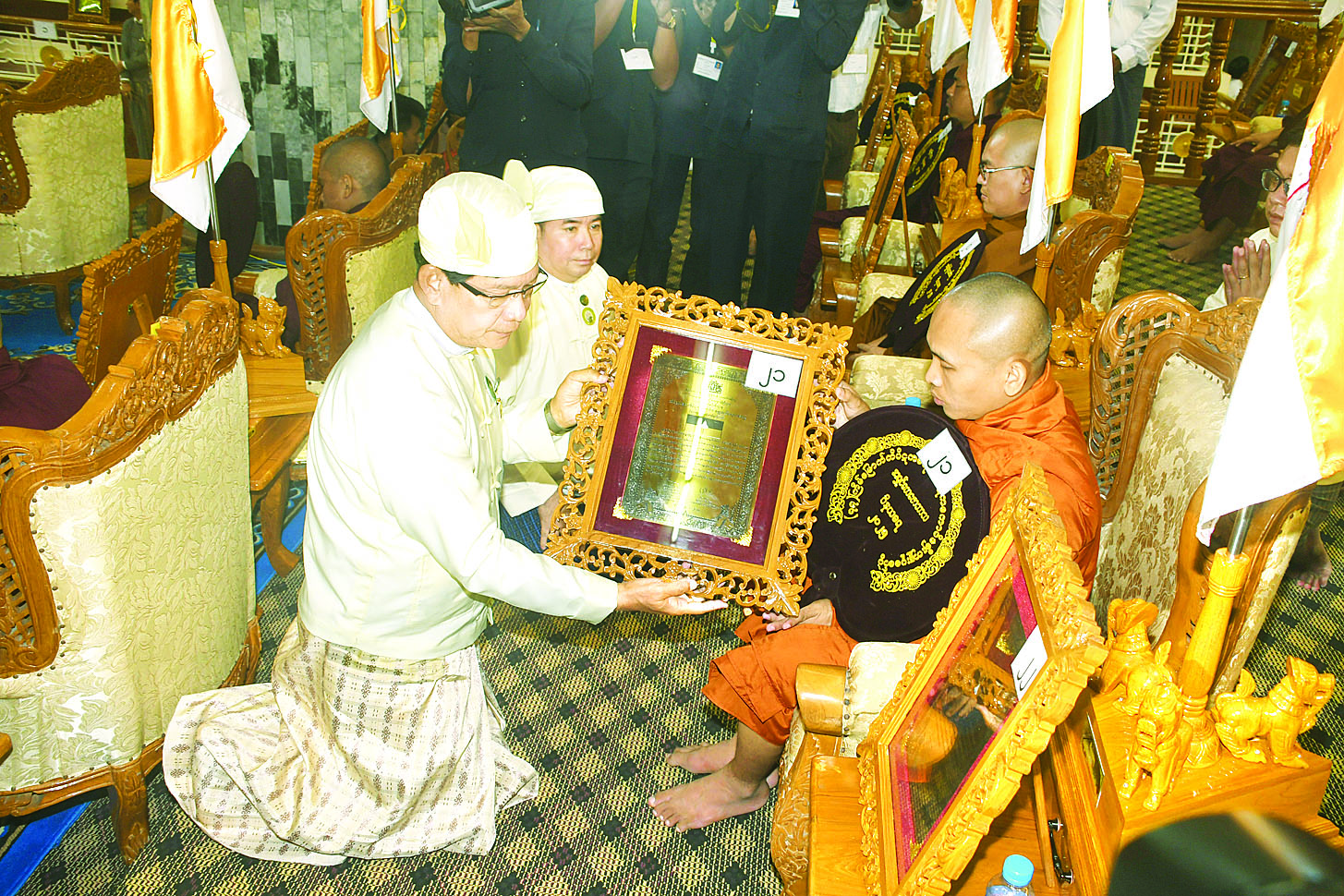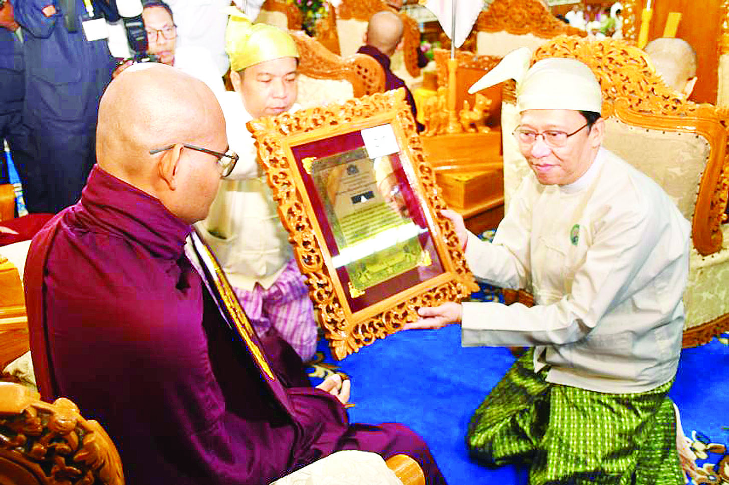 Union Ministers U Maung Maung Ohn, U Tin Oo Lwin and Dr Thet Khaing Win, Yangon Region Chief Minister U Soe Thein, senior Tatmadaw officers from the Office of the Commander-in-Chief, the commander of Yangon Command and officials presented Dighabhanaka title to nine monks, Vinayakovida title to one monk, Vinayadhara title to 29 monks, Ubhato Vibhangakovida title to seven monks and Ubhato Vibhangadhara title to 46 monks respectively.