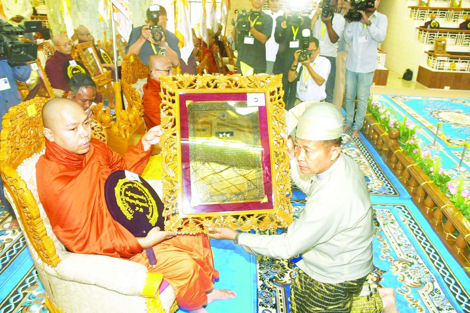 The Vice-Senior General offered the title and certificate of passing the exam to Ashin Setthañana Lankara from Tipitaka Maha Gandawin Nikaya Monastery of Dagon Myothit (East) Township who won the Tipitakadhara Tipitakakovida title due to passing the oral and written exams of all Tri Pitaka tratises.