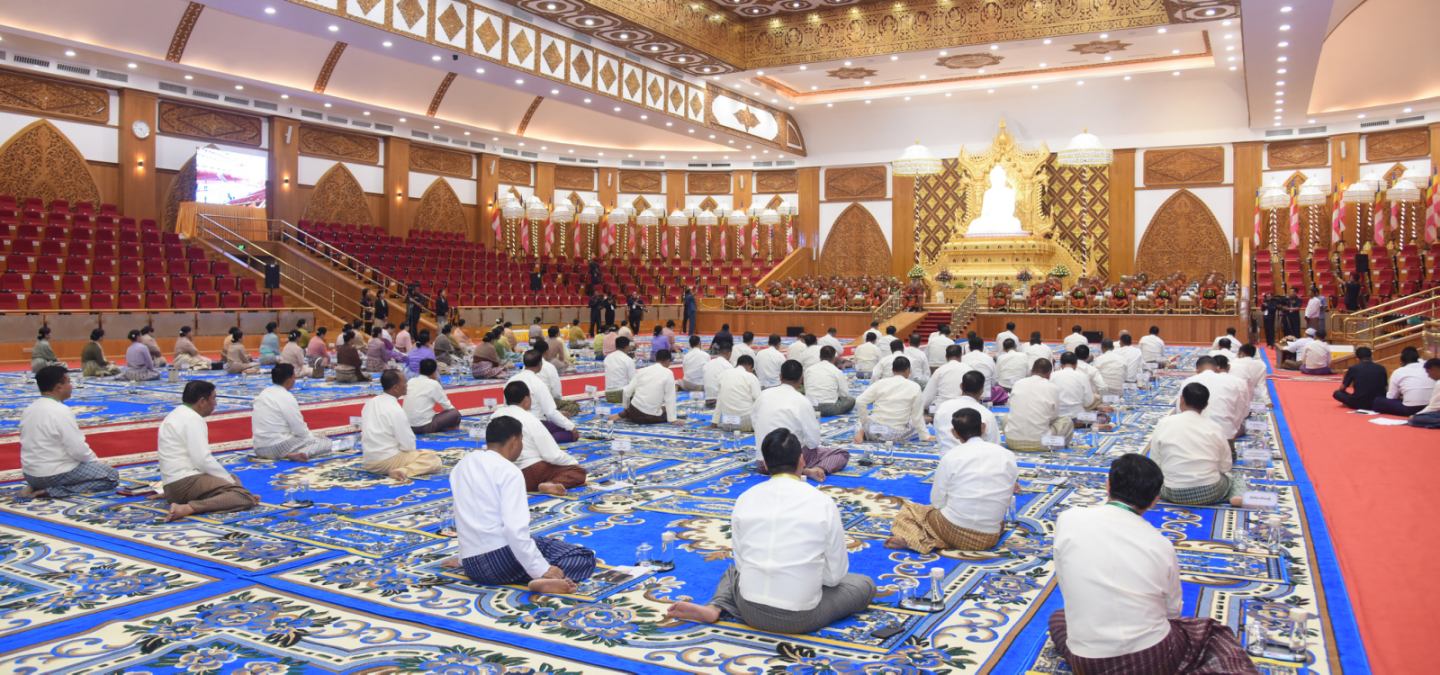 A ceremony to donate offertories and day meals to members of the Sangha who attended the Buddha Day ceremony on the full moon of Kason took place at Aggadhipati Sasana Beikman in the precinct of Maravijaya Buddha Park in Nay Pyi Taw yesterday morning, attended by Patron of the Buddha Day ceremony of Kason full moon day of the State Administration Council Vice-Chairman Deputy Prime Minister Vice-Senior General Soe Win and his wife Daw Than Than Nwe.