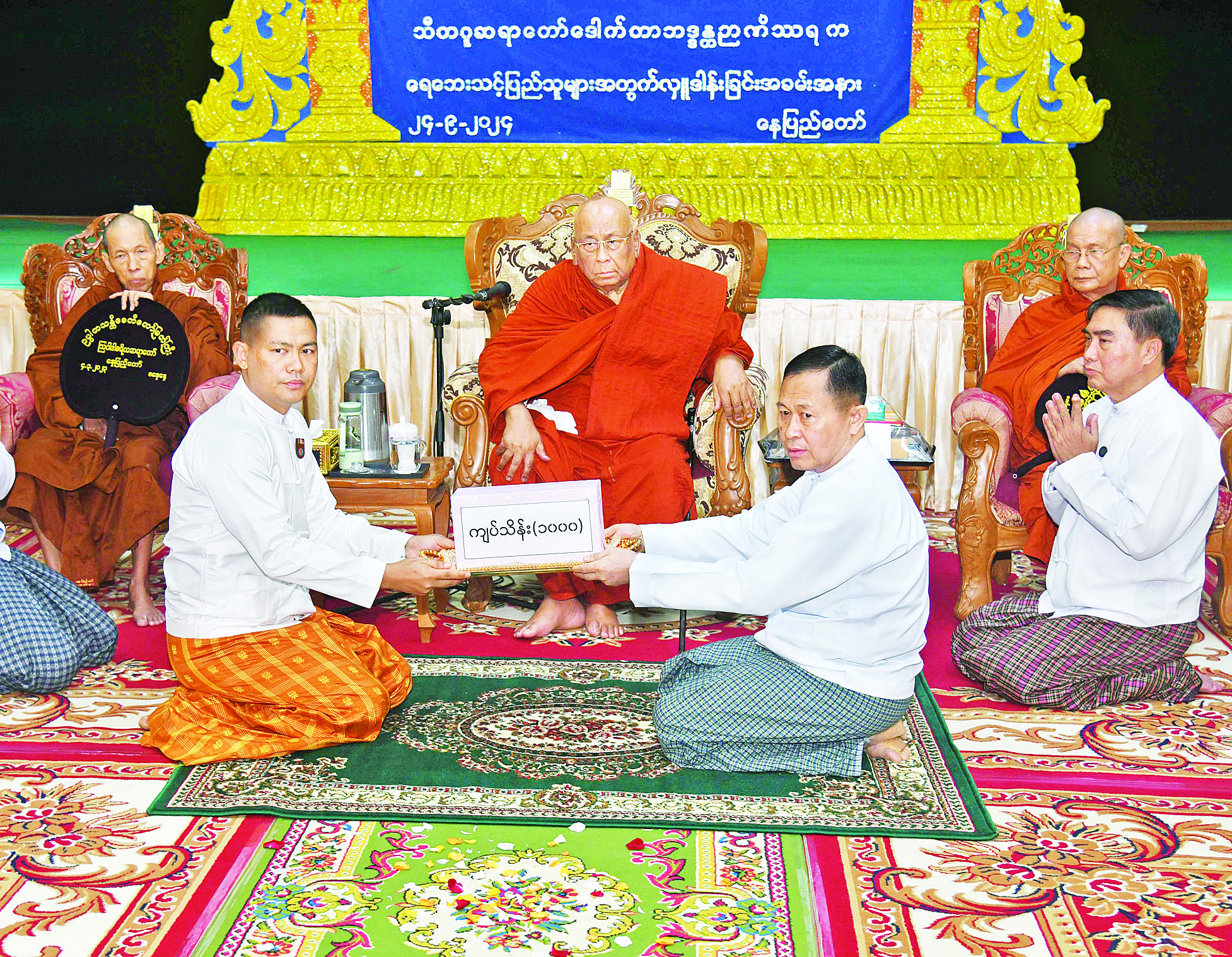 At the ceremony, a disciple on behalf of Sitagu Sayadaw presented US$10,000 to State Administration Council Vice-Chairman Deputy Prime Minister Vice-Senior General Soe Win, who, in the capacity of the National Disaster Management Committee Chairman, returned a certificate of appreciation.