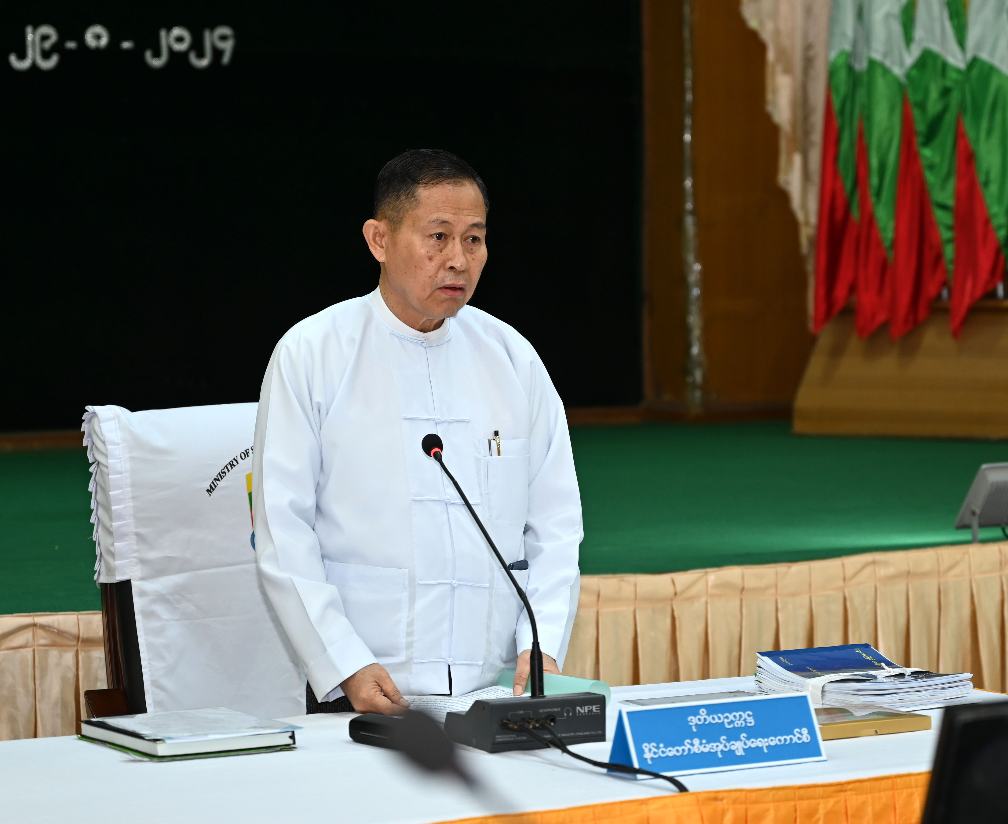 Chairman of the Leading Committee Union Minister for Sports and Youth Affairs U Min Thein Zan reported on the accomplishment of the previous meeting’s minutes, setting sports events and awarding programmes.