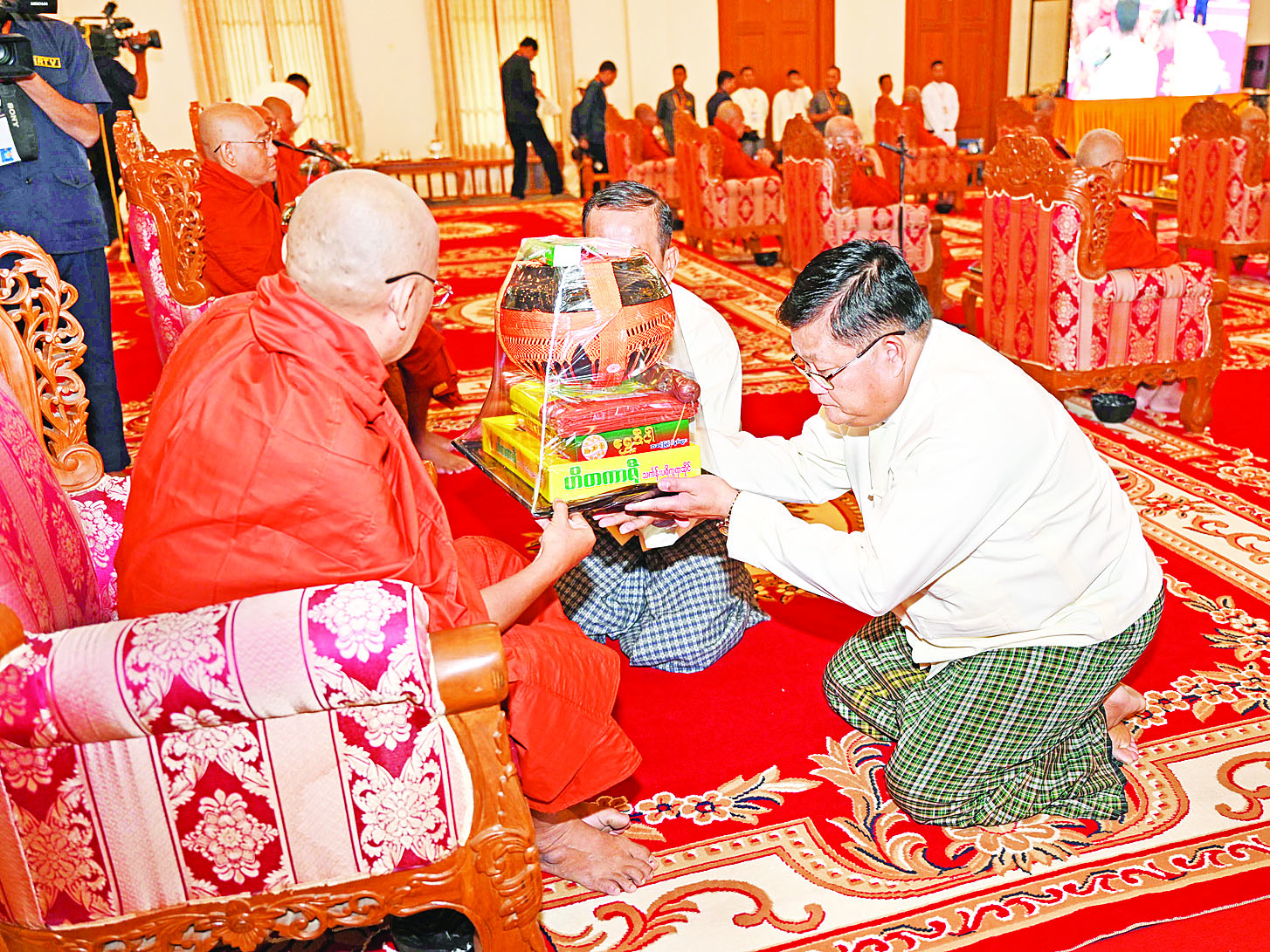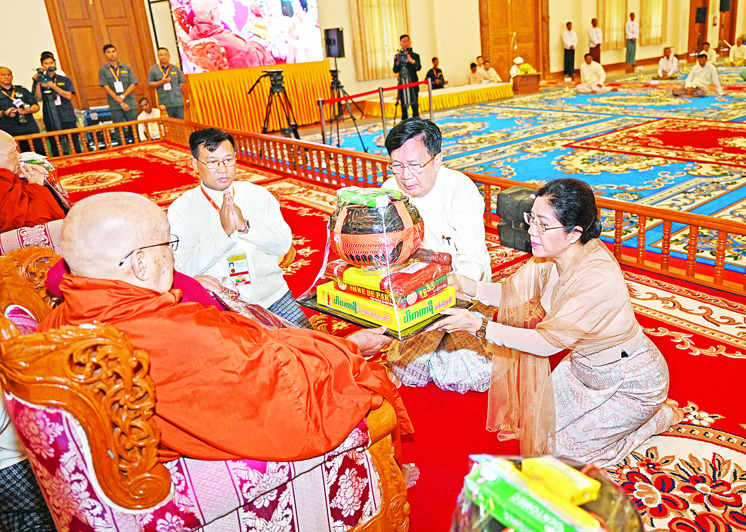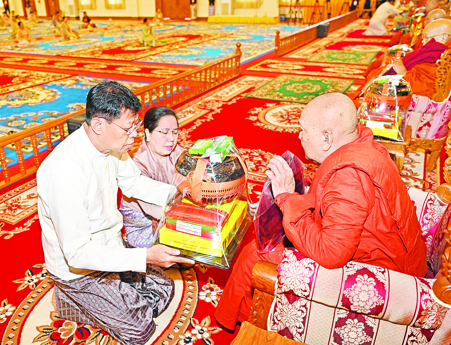 CHAIRMAN of the State Administration Council Prime Minister Senior General Min Aung Hlaing and his wife Daw Kyu Kyu Hla attended the Waso robe-offering ceremony of SAC for 2024 at Sasana Maha Beikman in the precinct of the Uppatasanti Pagoda in Nay Pyi Taw yesterday morning.