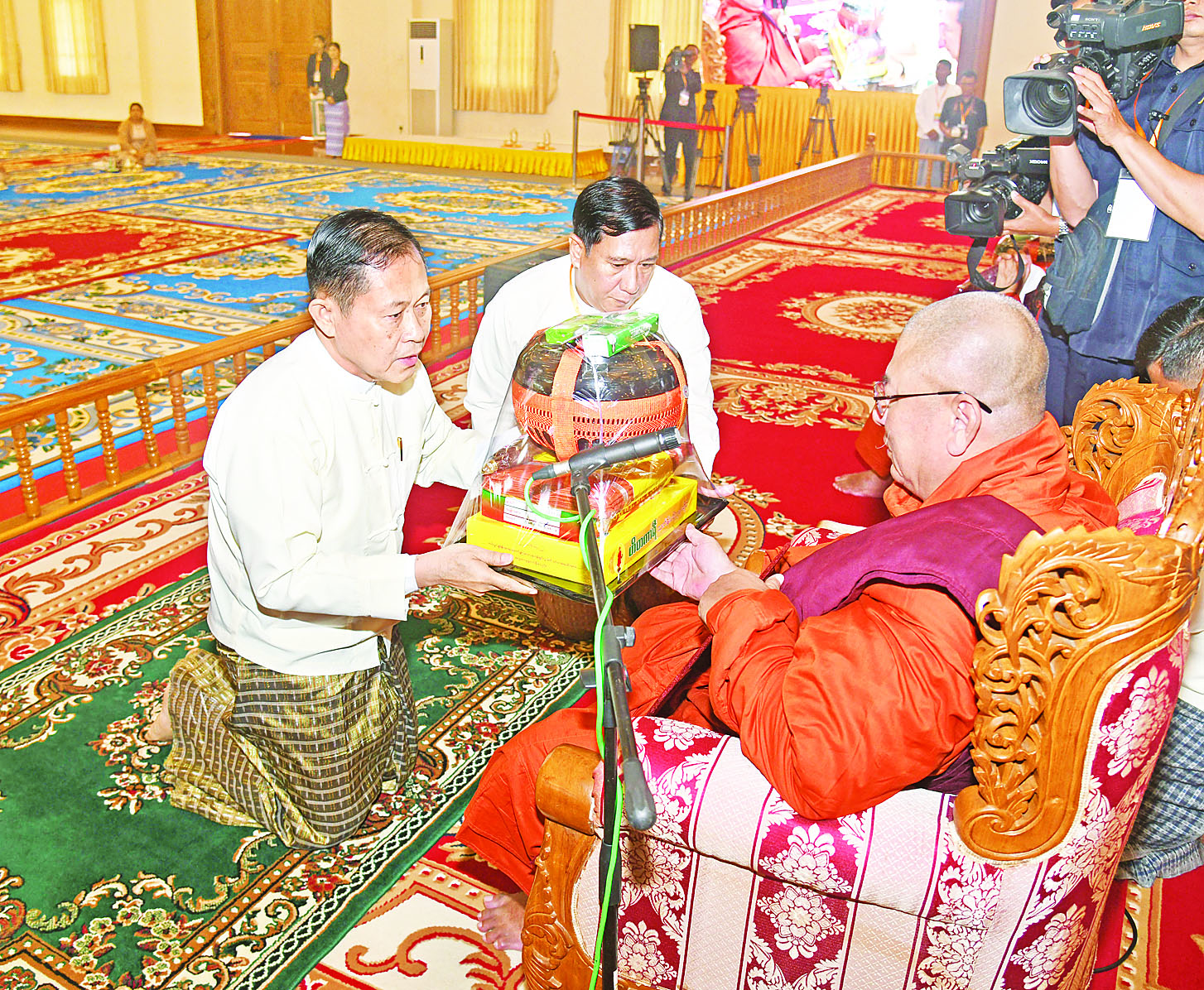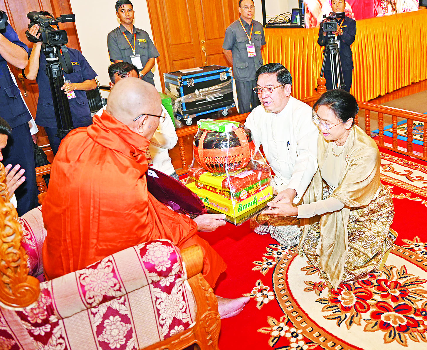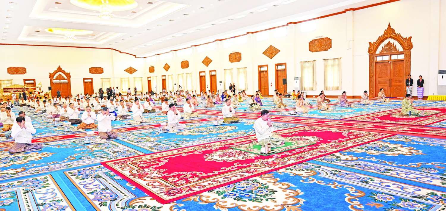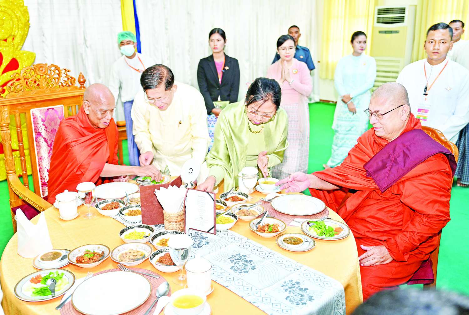 CHAIRMAN of the State Administration Council Prime Minister Senior General Min Aung Hlaing and his wife Daw Kyu Kyu Hla attended the Waso robe-offering ceremony of SAC for 2024 at Sasana Maha Beikman in the precinct of the Uppatasanti Pagoda in Nay Pyi Taw yesterday morning.