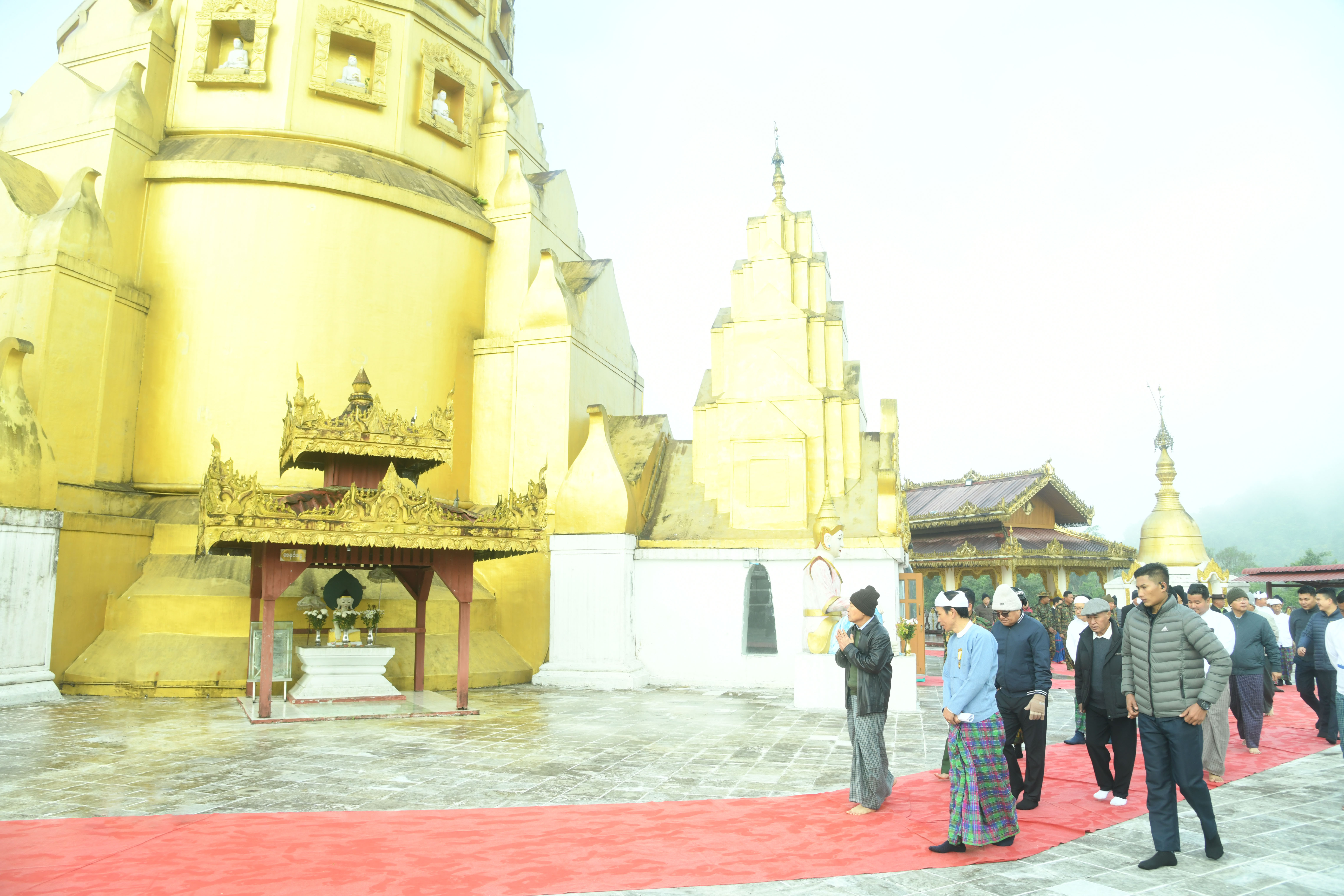 State Security and Peace Commission Vice-Chairman, Defence Services Deputy Commander-in-Chief, and Commander-in-Chief (Army) Vice-Senior General Soe Win paid homage to the Kaunghmulon Pagoda in Machanbaw Township of PutaO District yesterday morning.