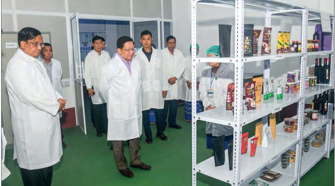 At the Department of Industrial Supervision and Inspection (PyinOoLwin District Branch) of the Ministry of Industry, Union Minister for Industry Dr Charlie Than reported to the Senior General on the purpose of building the foodstuff laboratories, types of libraries to test foodstuffs, labs of the Ministry of Industry, and MSME industries and production in regions and states, processes to develop SME businesses, laboratory services, training courses for operating MSME businesses, laboratory service of the Research Branch (PyinOoLwin), efforts to secure ISO 17025:2017 certificate and the requirements of the microorganism laboratory.