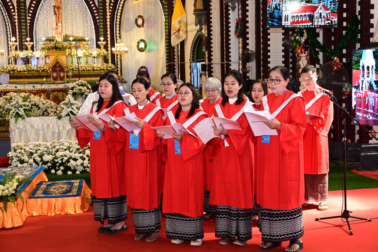 After that, the audience sang the hymn “Silent Night” in harmony. Then, Cardinal Charles Bo delivered Christmas greetings, wishing that on this blessed Christmas occasion, not only Christians but all humanity around the world may be filled with the goodness and blessings of Christmas. He also wished that in the New Year, the Republic of the Union of Myanmar may enjoy peace and prosperity, and extended his blessings to the Acting President of the Republic of the Union of Myanmar and SSPC Chairman and his wife, and all the people of Myanmar.