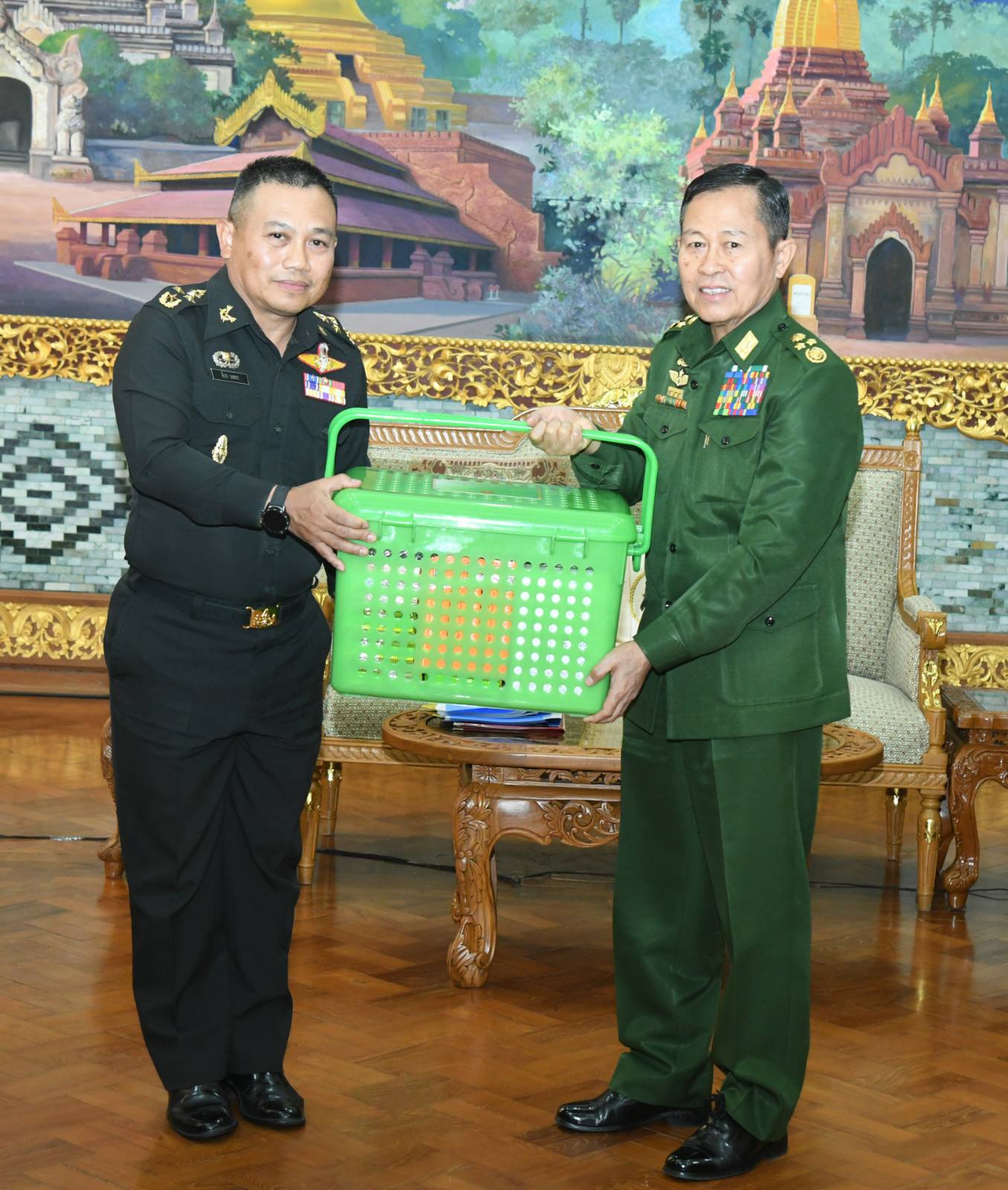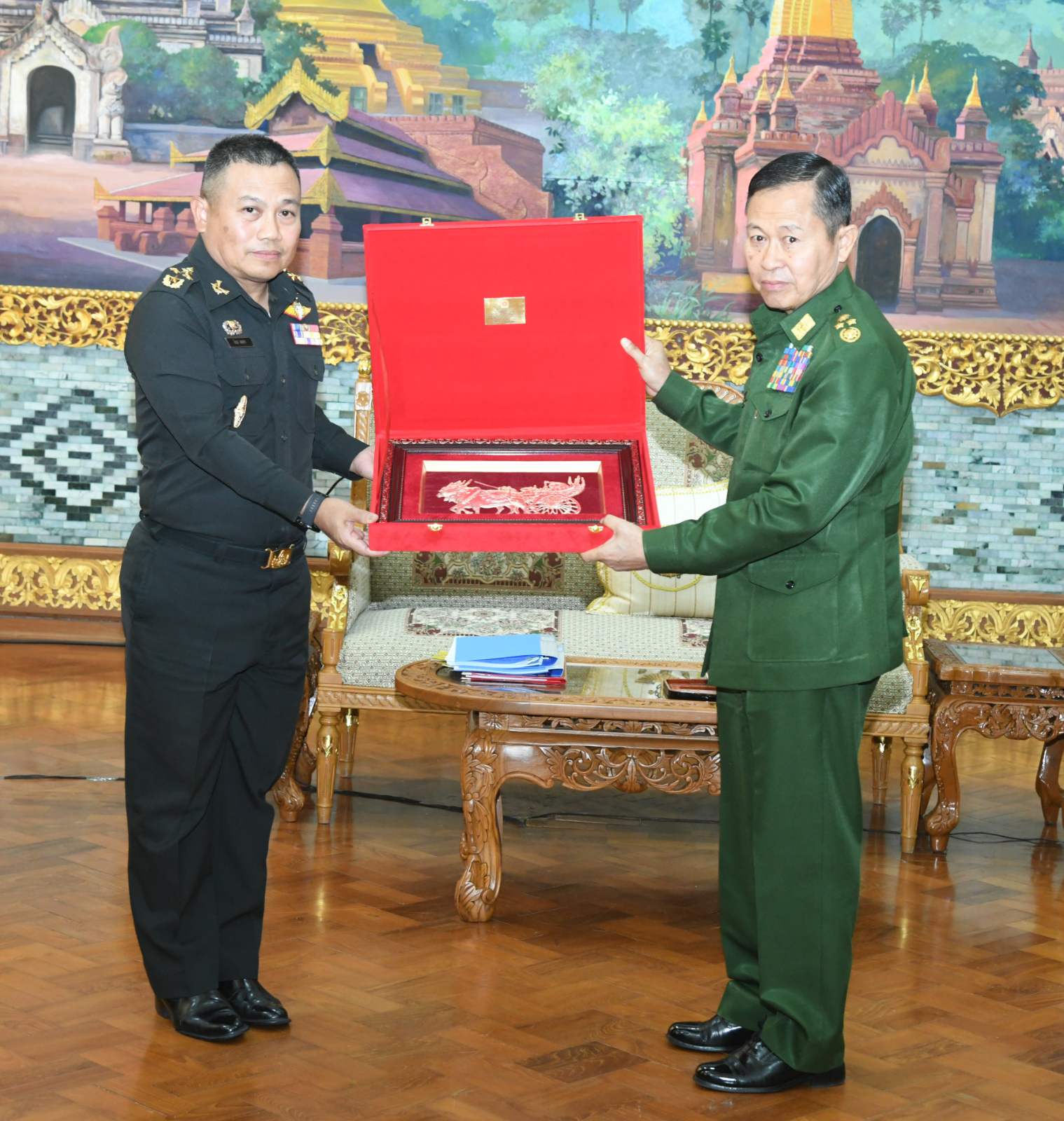 At the meeting, they discussed good conditions in diplomatic relations and friendly ties between the two countries and the two Tatmadaws, improvement of relations between leaders and senior Tatmadaw officers of both Tatmadaws, promotion of cooperation, successfully holding the yearly meetings between Tatmadaw officers at different levels of both countries, the measures which should be taken in cooperation between governments and Tatmadaws of the two countries in the eradication of human trafficking and online scams in border areas, action taken against illegal fishing trawlers and fishermen from Thailand in Myanmar’s territorial waters and plans, exchange of information to ensure peace and stability in the border region, exchange of goodwill visits of senior Tatmadaw officers from both Tatmadaws and the enhancement of cooperation.