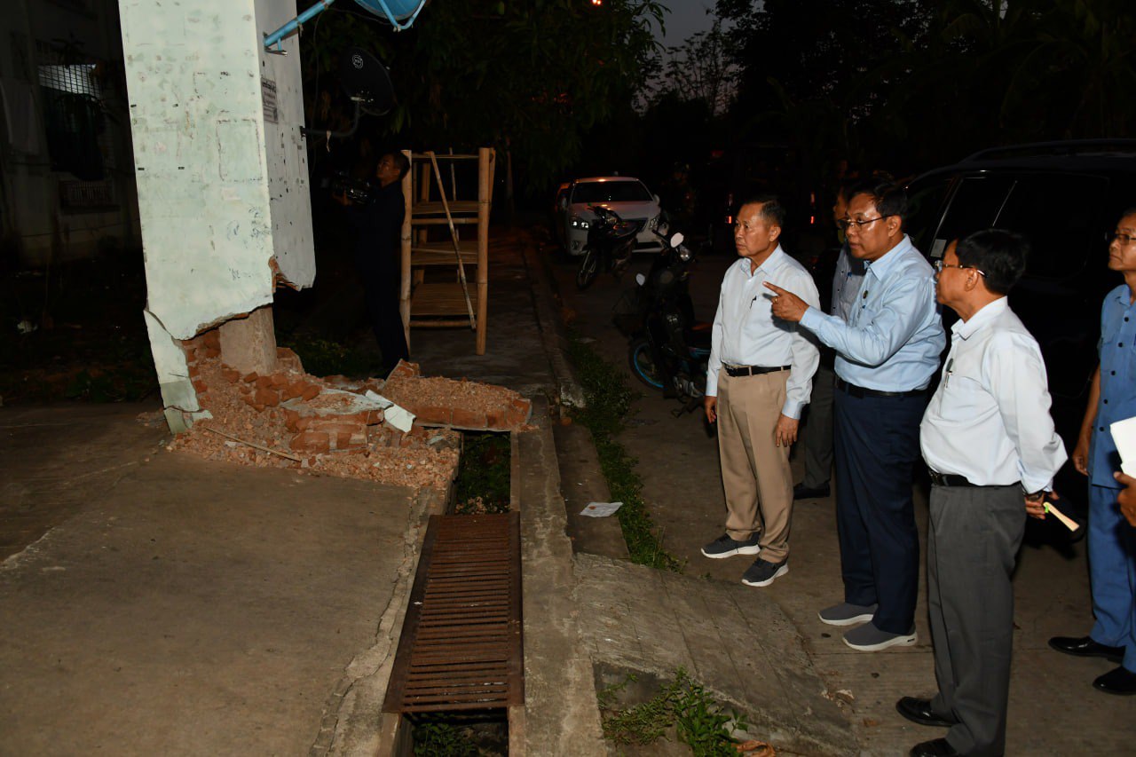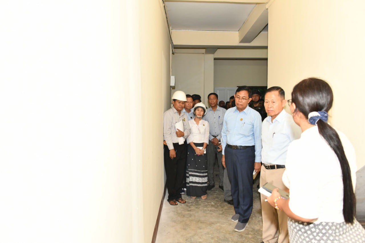 The Vice-Senior General looked into repairing of slightly damaged walls of building-5 of Thabyay-2 female staff housing and building-8 of Thabyay-4 male staff housing with the use of Sikalatex, Sika Grout and cement. He also inspected damage to Building-18 of Thazin-5 male staff housing identified at red level and instructed officials to carry out sanitation around the buildings.