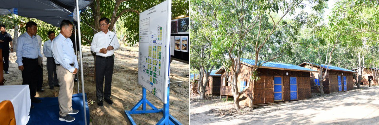 At the Ministry of Natural Resources and Environmental Conservation, Union Minister U Khin Maung Yi reported to the Vice-Senior General on construction of the temporary staff housing on a 22-acre land and the plot chosen for construction of the modular house. The Vice-Senior General inspected relocation of staff and their families at the temporary housing, and progress of more housing. He comforted staff families and fulfilled the needs.