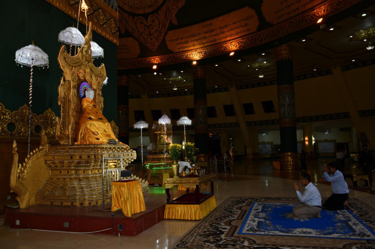 On arrival at Uppatasanti Pagoda, the Vice-Senior General inspected systematic removal of slabs for repair of the platform of the pagoda, and preparation for renovation in the cave.