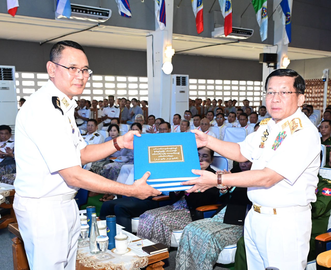 The Senior General unveiled that the maritime interests of Myanmar extend not only within the territorial seas but also across the offshore waters designated as exclusive economic zones. Therefore, Tatmadaw (Navy) must be capable of protecting and defending them. In addition, to be able to match the naval forces of neighbouring countries along the maritime borders, it is essential to maintain a well-organized fleet of various types of highly capable and combat-ready warships.
