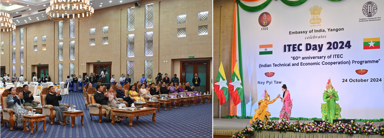ထို့နောက် မြန်မာနိုင်ငံဆိုင်ရာအိန္ဒိယနိုင်ငံသံအမတ်ကြီးက နှုတ်ခွန်းဆက်စကား ပြောကြားရာတွင် အိန္ဒိယနည်းပညာနှင့်စီးပွားရေး ပူးပေါင်းဆောင်ရွက်မှု အစီအစဉ် (India Technical and Economic Cooperation) ITEC ဆောင်ရွက်လျက်ရှိမှု အခြေအနေများကို ဦးစွာ ရှင်းလင်းပြောကြားပြီး ယခုကျင်းပသည့် အိန္ဒိယ နည်းပညာနှင့် စီးပွားရေး ပူးပေါင်းဆောင်ရွက်မှု အစီအစဉ်၏ နှစ်(၆၀) ပြည့် အထိမ်းအမှတ် အခမ်းအနားသို့ နိုင်ငံတော်စီမံအုပ်ချုပ်ရေးကောင်စီဥက္ကဋ္ဌ နိုင်ငံတော်ဝန်ကြီးချုပ်နှင့် ဇနီးတို့ ကိုယ်တိုင် တက်ရောက်ချီးမြှင့်ပေးသည့်အတွက် အထူးပင် ကျေးဇူးတင်ရှိပါကြောင်း၊ ယခုကဲ့သို့ နိုင်ငံတော်ဝန်ကြီးချုပ် ကိုယ်တိုင် တက်ရောက် ချီးမြှင့်ပေးခြင်းသည် မြန်မာနိုင်ငံ၏ ဘက်စုံဖွံ့ဖြိုးတိုးတက်မှုနှင့် စီးပွားရေးတိုးတက်မှုတို့တွင် လူ့စွမ်းအားအရင်းအမြစ် ဖွံ့ဖြိုးတိုးတက်ရေးသည် အရေးကြီးကြောင်းကို ဖော်ပြခြင်းပင် ဖြစ်ပါကြောင်း၊ မကြာမီက မြန်မာနိုင်ငံတွင် သီတင်းကျွတ်ပွဲတော်ကို ကျင်းပခဲ့ပြီး လာမည့်ရက်သတ္တပတ်အတွင်း၌လည်း မိမိတို့ အိန္ဒိယနိုင်ငံ၌ ဒီပါဝါလီပွဲတော်ကို ကျင်းပမည်ဖြစ်ကြောင်း၊ ထိုပွဲတော်နှစ်ရပ်လုံးမှာ မီးထွန်းပွဲတော်များဖြစ်ပြီး တစ်ခုနှင့်တစ်ခု ရောင်ပြန်ဟပ်သကဲ့သို့ အိန္ဒိယနှင့် မြန်မာလူမျိုးများ အတူတကွ ပေါင်းစည်းထားသည့် ဆွေမျိုးရင်းချာပမာ ရင်းနှီးသော ဆက်ဆံရေး၏ ရောင်ပြန်ဟပ်မှု တစ်ခုပင်ဖြစ်ကြောင်း၊ ထို့ကြောင့် မီးထွန်းပွဲတော်များ၏ ဖြစ်တည်မှုစိတ်ဓာတ်ဖြင့် သမိုင်းဝင်ပြီး အားရဖွယ်ကောင်းသည့် ယခု အခမ်းအနားသည် မိမိတို့၏ ဆက်ဆံရေးနှင့် ချစ်ကြည်ရင်းနှီးမှုကို ပိုမိုခိုင်မြဲစေကာ အိန္ဒိယနိုင်ငံနှင့် မြန်မာနိုင်ငံအကြား ပိုမို နီးကပ်သည့် ပူးပေါင်းဆောင်ရွက်မှု လမ်းကြောင်းကို ဆက်လက်ထွန်းလင်းပါစေကြောင်း၊ အိန္ဒိယ-မြန်မာ ချစ်ကြည်ရင်းနှီးမှု အဓွန့်ရှည်ပါစေရန် ဆုမွန်ကောင်းတောင်းပါကြောင်း ပြောကြားသည်။