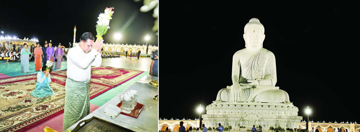 ထို့နောက် နိုင်ငံတော်ယာယီသမ္မတ နိုင်ငံတော်လုံခြုံရေးနှင့်အေးချမ်းသာယာရေးကော်မရှင်ဥက္ကဋ္ဌနှင့်ဇနီးတို့က မာရဝိဇယဗုဒ္ဓရုပ်ပွားတော်မြတ်ကြီး တန်ဆောင်တိုင်မီးထွန်းပွဲတော် မီးပုံးပျံလွှတ်တင်ပူဇော်ခြင်း ဖွင့်ပွဲအခမ်းအနားအား ဖဲကြိုးဖြတ်ဖွင့်လှစ်ပေးကြသည်။