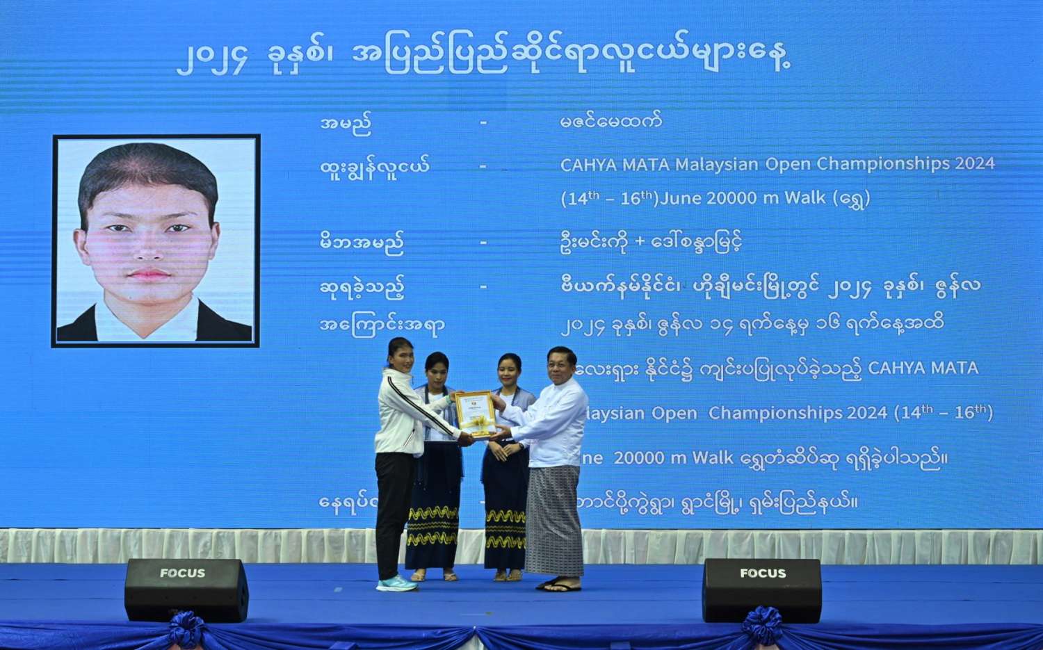 ယင်းနောက် နိုင်ငံတော်စီမံအုပ်ချုပ်ရေးကောင်စီဥက္ကဋ္ဌ နိုင်ငံတော်ဝန်ကြီးချုပ်နှင့် အဖွဲ့ဝင်များသည် အပြည်ပြည်ဆိုင်ရာပြိုင်ပွဲများတွင် ရွှေတံဆိပ်ဆုရထူးချွန်လူငယ်များနှင့်အတူ စုပေါင်းမှတ်တမ်းတင်ဓာတ်ပုံရိုက်ကြပြီး နိုင်ငံတော်စီမံအုပ်ချုပ်ရေးကောင်စီက္ကဋ္ဌ နိုင်ငံတော်ဝန်ကြီးချုပ်က တက်ရောက်လာကြသူများအား ရင်းရင်းနှီးနှီးနှုတ်ဆက်သည်။