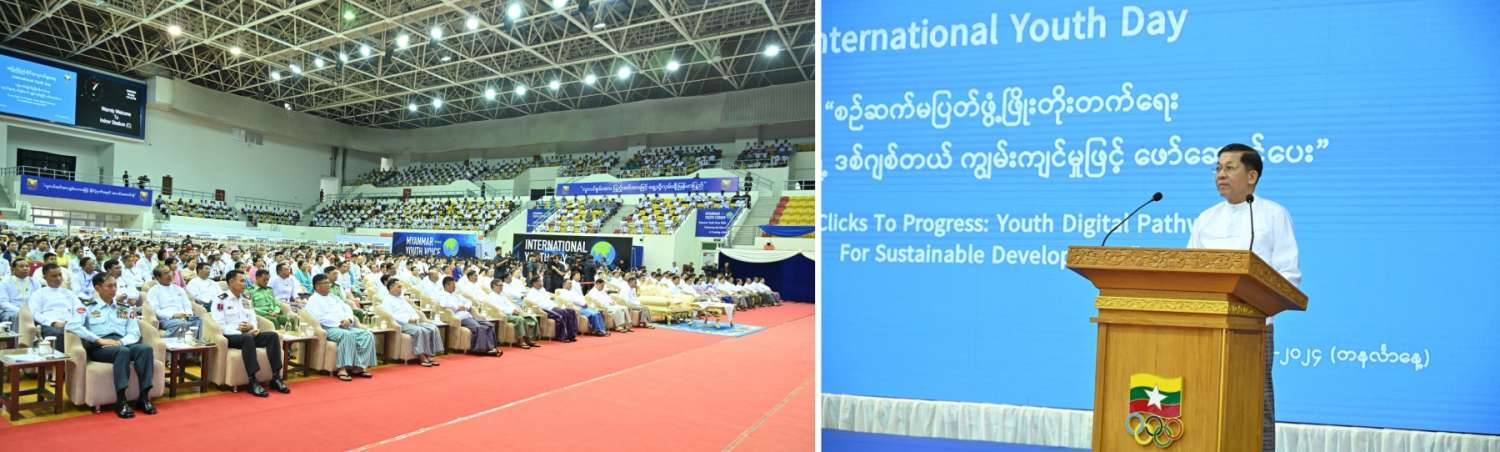 ၂ဝ၂၄ ခုနှစ်၊ အပြည်ပြည်ဆိုင်ရာလူငယ်များနေ့ အခမ်းအနားကျင်းပ နိုင်ငံတော်စီမံအုပ်ချုပ်ရေးကောင်စီဥက္ကဋ္ဌ နိုင်ငံတော်ဝန်ကြီးချုပ် ဗိုလ်ချုပ်မှူးကြီး မင်းအောင်လှိုင် တက်ရောက်အမှာစကားပြောကြား