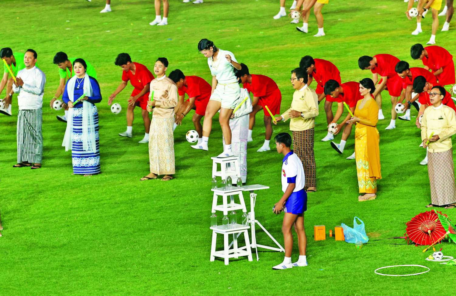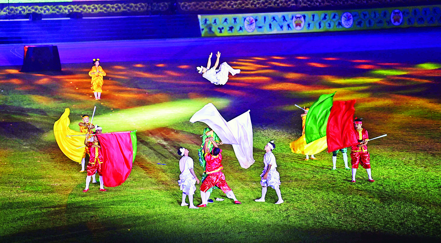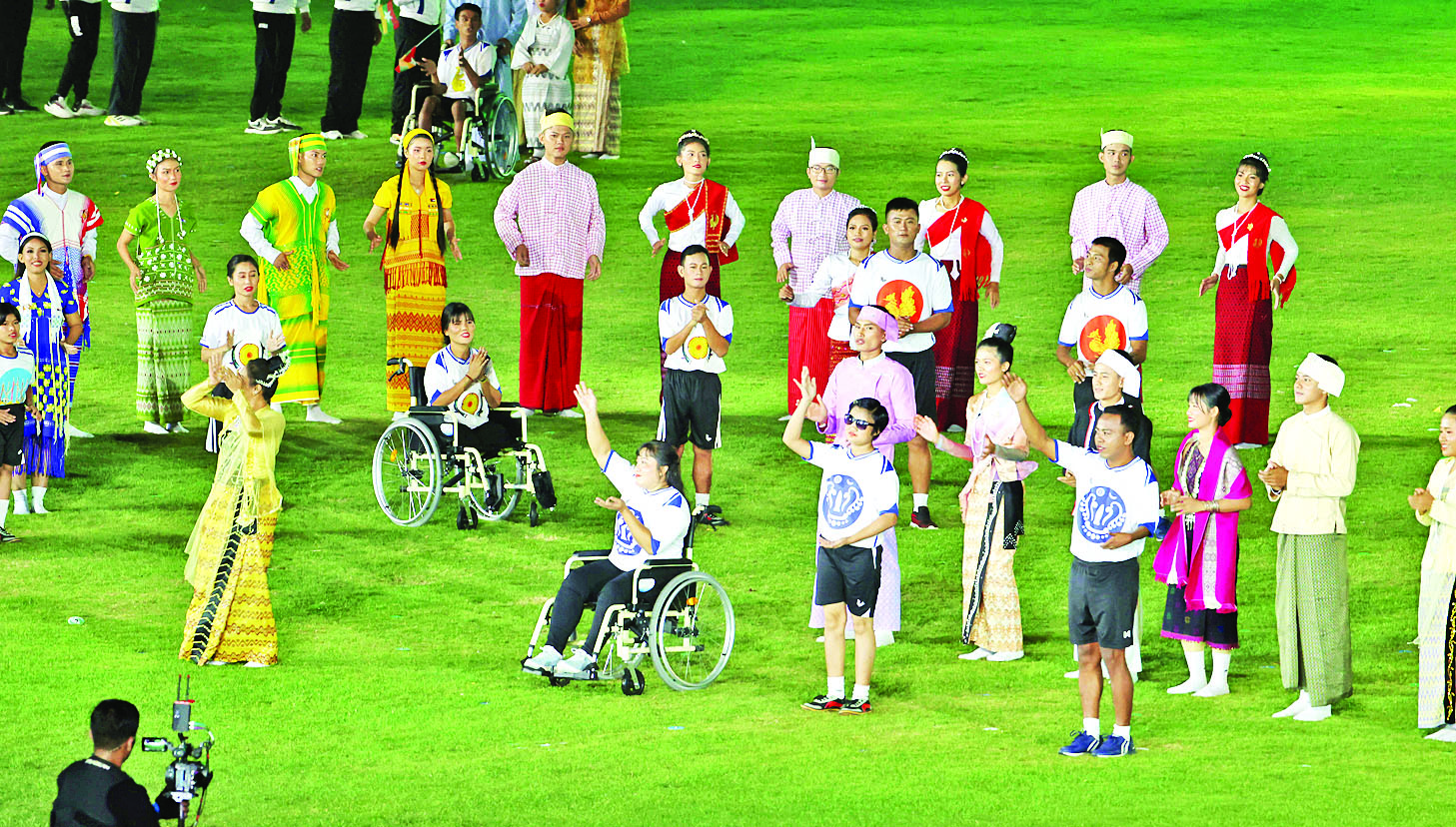 ဆက်လက်ပြီး နိုင်ငံတော်စီမံအုပ်ချုပ်ရေးကောင်စီဥက္ကဋ္ဌ နိုင်ငံတော်ဝန်ကြီးချုပ်နှင့်ဇနီး၊ အခမ်းအနားတက်ရောက်လာကြသူများသည် သာသနာရေးနှင့်ယဉ်ကျေးမှုဝန်ကြီးဌာန အနုပညာဦးစီးဌာနမှ အနုပညာရှင်များ၏ မြန်မာ့သမိုင်းစဉ်တစ်လျှောက် အထင်အရှားရှိခဲ့သည့် ခေတ် ၆ ခေတ် ကို ကိုယ်စားပြုသည့် ယိမ်းအကများဖြင့် သရုပ်ဖော်တင်ဆက်မှု၊ မြန်မာနိုင်ငံ မသန်စွမ်းအားကစားအဖွဲ့ချုပ်၊ နေပြည်တော် နည်းပညာအထက်တန်းကျောင်းမှ ကျောင်းသားကျောင်းသူများ၊ မြန်မာနိုင်ငံရုပ်ရှင်အစည်းအရုံး၊ မြန်မာနိုင်ငံခြင်းလုံးအဖွဲ့ချုပ်၊ မြန်မာနိုင်ငံသဘင်အစည်းအရုံး၊ မြန်မာနိုင်ငံဟာသပညာရှင်များ အစည်းအရုံးတို့မှအဖွဲ့ဝင်များ၊ ပြည်ထောင်စုတိုင်းရင်းသားလူမျိုးများ ဖွံ့ဖြိုးရေးတက္ကသိုလ်နှင့် ပြည်ထောင်စုတိုင်းရင်းသားလူငယ်များ စွမ်းရည်ဖွံ့ဖြိုးရေးဒီဂရီကောလိပ်တို့မှ ကျောင်းသား၊ ကျောင်းသူများ၊ သာသနာရေးနှင့် ယဉ်ကျေးမှုဝန်ကြီးဌာန၊ ပညာရေးဝန်ကြီးဌာန၊ သိပ္ပံနှင့် နည်းပညာဝန်ကြီးဌာနတို့မှ ကျောင်းသားကျောင်းသူများက သရုပ်ပြဖျော်ဖြေမှုများ၊ တေးသီချင်းများဖြင့် သီဆိုတင်ဆက်မှုများကို ကြည့်ရှုအားပေးကြသည်။