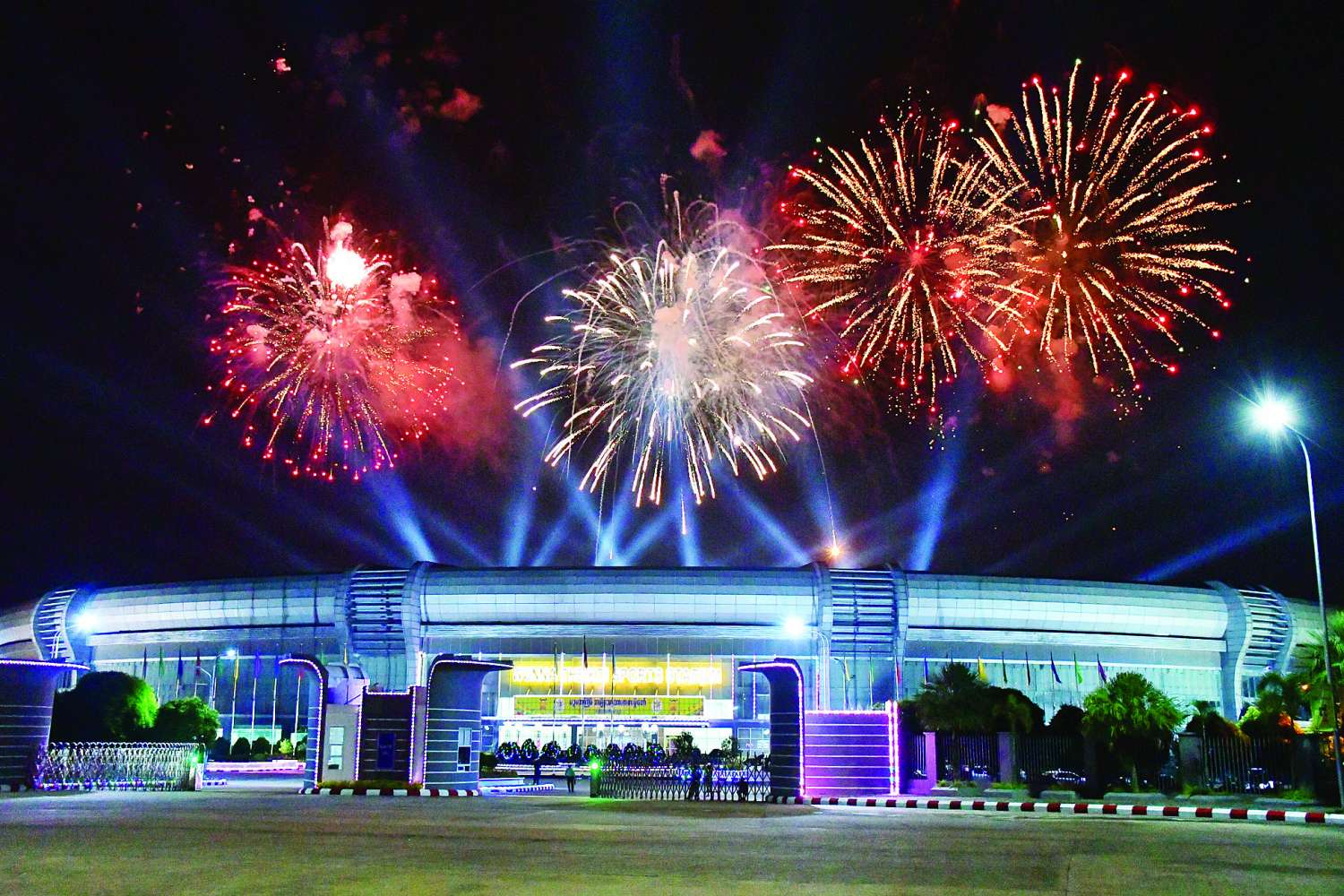 မိန့်ခွန်းပြောကြားပြီးသည်နှင့် တစ်ပြိုင်နက် ၂ဝ၂၄ခုနှစ်၊ ပဉ္စမအကြိမ်မြောက် အမျိုးသားအားကစားပွဲတော်ဖွင့်လှစ်ခြင်း အထိမ်းအမှတ် မီးရှူးမီးပန်းများ ပစ်ဖောက်ကြသည်။