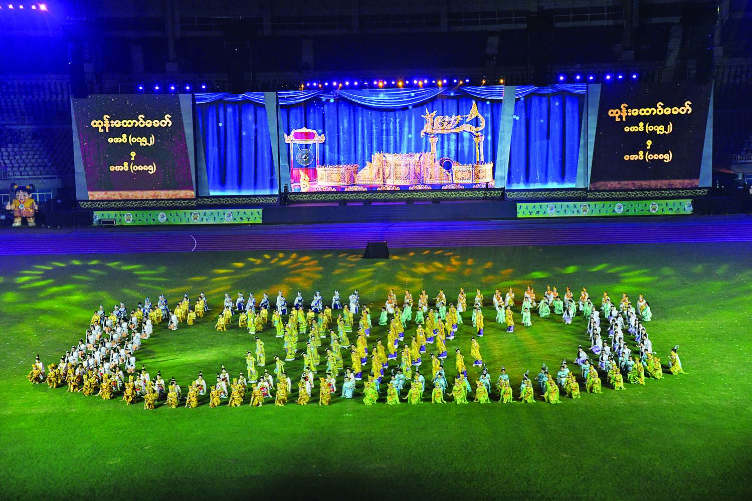 ဆက်လက်၍ အခမ်းအနားအား အမှတ်စဉ်ရေတွက်၍ ဖွင့်လှစ်ပြီး တစ်ချိန်တည်းတွင် မီးရှူးမီးပန်းများ ပစ်ဖောက်ကာ သာသနာရေးနှင့်ယဉ်ကျေးမှုဝန်ကြီးဌာန အနုပညာဦးစီးဌာနနှင့် ပညာရေးဝန်ကြီးဌာန အခြေခံပညာဦးစီးဌာနတို့ပူးပေါင်း၍ “လှပချစ်စရာ တို့ရွှေမြန်မာ” တေးသီချင်းဖြင့် သရုပ်ဖော်တင်ဆက်ကပြကြသည်။