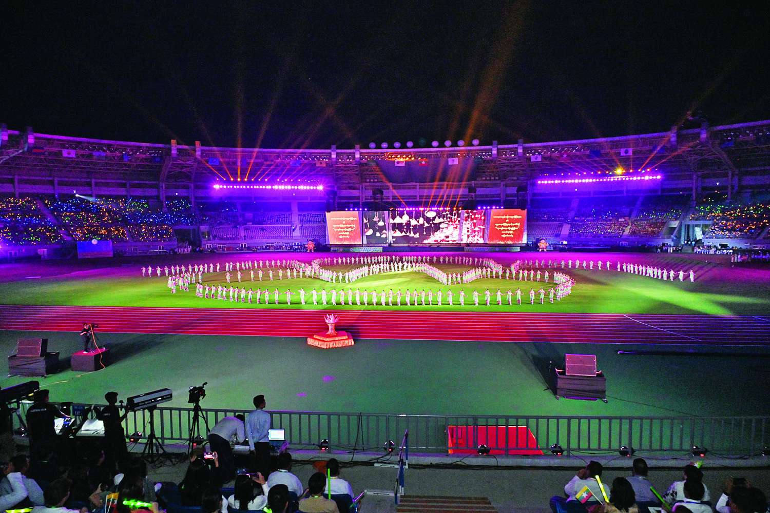 အခမ်းအနားသို့ နိုင်ငံတော်စီမံအုပ်ချုပ်ရေးကောင်စီဥက္ကဋ္ဌ နိုင်ငံတော်ဝန်ကြီးချုပ်၏ဇနီးဒေါ်ကြူကြူလှ၊ နိုင်ငံတော်စီမံအုပ်ချုပ်ရေးကောင်စီဒုတိယဥက္ကဋ္ဌ ဒုတိယဝန်ကြီးချုပ် ဒုတိယဗိုလ်ချုပ်မှူးကြီး စိုးဝင်းနှင့်ဇနီးဒေါ်သန်းသန်းနွယ်၊ ကောင်စီအတွင်းရေးမှူး ဗိုလ်ချုပ်ကြီး အောင်လင်းဒွေးနှင့်ဇနီး၊ ကောင်စီတွဲဖက်အတွင်းရေးမှူး ဗိုလ်ချုပ်ကြီး ရဲဝင်းဦးနှင့်ဇနီး၊ ကောင်စီအဖွဲ့ဝင်များနှင့်ဇနီးများ၊ ပြည်ထောင်စုဝန်ကြီးများ၊ ပြည်ထောင်စုအဆင့်ပုဂ္ဂိုလ်များနှင့်ဇနီးများ၊ နေပြည်တော်ကောင်စီဥက္ကဋ္ဌ၊ ကာကွယ်ရေးဦးစီးချုပ်ရုံးမှ အဆင့်မြင့် တပ်မတော်အရာရှိကြီးများ၊ နေပြည်တော်တိုင်းစစ်ဌာနချုပ်တိုင်းမှူး၊ ဒုတိယဝန်ကြီးများ၊ အိုလံပစ်ကော်မတီဝင်များ၊ မြန်မာနိုင်ငံအားကစားအဖွဲ့ချုပ်များမှ ဥက္ကဋ္ဌများ၊ ဒုတိယဥက္ကဋ္ဌများနှင့် အဖွဲ့ဝင်များ၊ အထူးဖိတ်ကြားထားသည့် ဧည့်သည်တော်များ၊ အနုပညာရှင်များ၊ ပြည်ထောင်စုဝန်ကြီးဌာနများ၊ တိုင်းဒေသကြီးနှင့် ပြည်နယ်များမှ ပြိုင်ပွဲဝင် အားကစားအသင်းများမှ အုပ်ချုပ်သူများ၊ နည်းပြများနှင့် အားကစားသမားများ၊ တပ်မတော်သားများ၊ ဝန်ကြီးဌာနအသီးသီးမှ ဝန်ထမ်းများ၊ ကျောင်းသား၊ ကျောင်းသူများ၊ အားကစားဝါသနာရှင် ပြည်သူများတက်ရောက်ကြသည်။