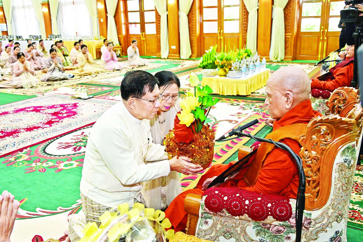 ယင်းနောက် နိုင်ငံတော်စီမံအုပ်ချုပ်ရေးကောင်စီဒုတိယဥက္ကဋ္ဌ ဒုတိယတပ်မတော်ကာကွယ်ရေးဦးစီးချုပ် ကာကွယ်ရေးဦးစီးချုပ် (ကြည်း) နှင့် ဇနီးက နိုင်ငံတော်သံဃမဟာနာယကအဖွဲ့ အကျိုးတော်ဆောင် မစိုးရိမ်တိုက်သစ်ဆရာတော်ကြီးထံ ဝါဆိုသင်္ကန်းနှင့် လှူဖွယ်ပစ္စည်းများကို ဆက်ကပ်လှူဒါန်းသည်။