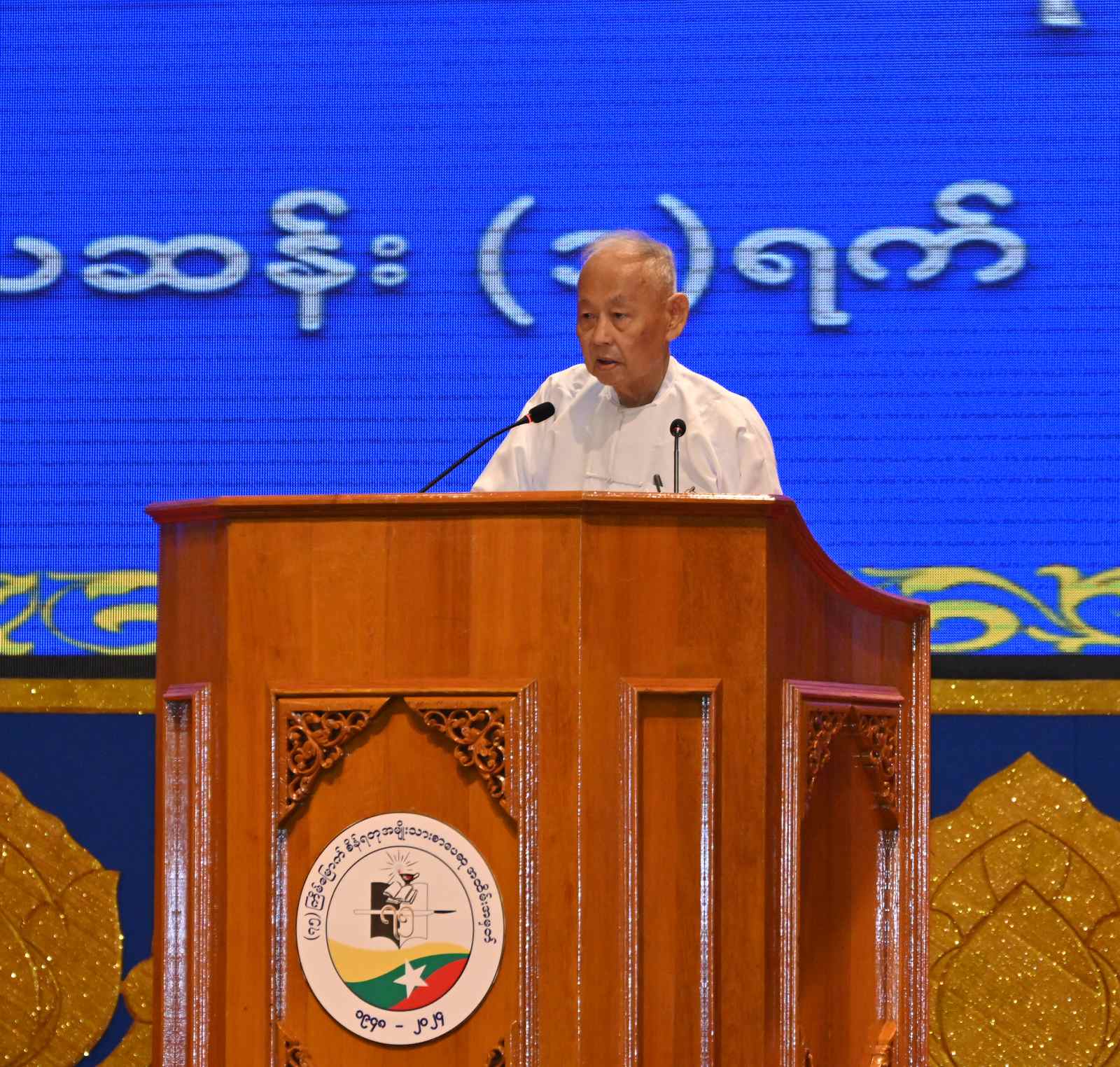 မိမိတို့ နိုင်ငံတော်စီမံအုပ်ချုပ်ရေးကောင်စီအနေဖြင့် နိုင်ငံတော်နှင့် တိုင်းရင်းသားပြည်သူများအားလုံး၏ ငြိမ်းချမ်းသာယာဝပြောသည့် အနာဂတ်၊ ကောင်းမွန်သည့် ပစ္စုပ္ပန်ကို ကြိုးစားတည်ဆောက်လျက်ရှိကြောင်း၊ ထိုသို့ဆောင်ရွက်ရာတွင် စာပေပညာရှင်ကြီးများ၏အားသည် အလွန်အရေးပါပြီး ကောင်းကျိုးများစွာ ရရှိနိုင်မည်ဟုလည်း ယုံကြည်ကြောင်း၊ နိုင်ငံတော်အနေဖြင့်လည်း စာပေအနုပညာကဏ္ဍ အသီးသီးမှ ပညာရှင်များ မိမိတို့၏ အနုပညာကို အရည်အသွေးမြင့်မားစွာ၊ လွတ်လပ်စွာ ဖန်တီးပုံဖော်နိုင်ရေးတတ်စွမ်းသမျှ အားပေးကူညီ ဖြည့်ဆည်းပေးလျက်ရှိကြောင်း၊ ယခုအခါ စာပေပညာရှင်များနှင့် စာပေလောကအကျိုးကို ဖြည့်ဆည်းပေးမည့် “စာဆိုဗိမာန်” အဆောက်အအုံကြီးကိုလည်း အိန္ဒိယနိုင်ငံအစိုးရနှင့် ပူးပေါင်းပြီး အကောင်အထည်ဖော်ဆောင်ရွက်နေပြီဖြစ်ကြောင်း။