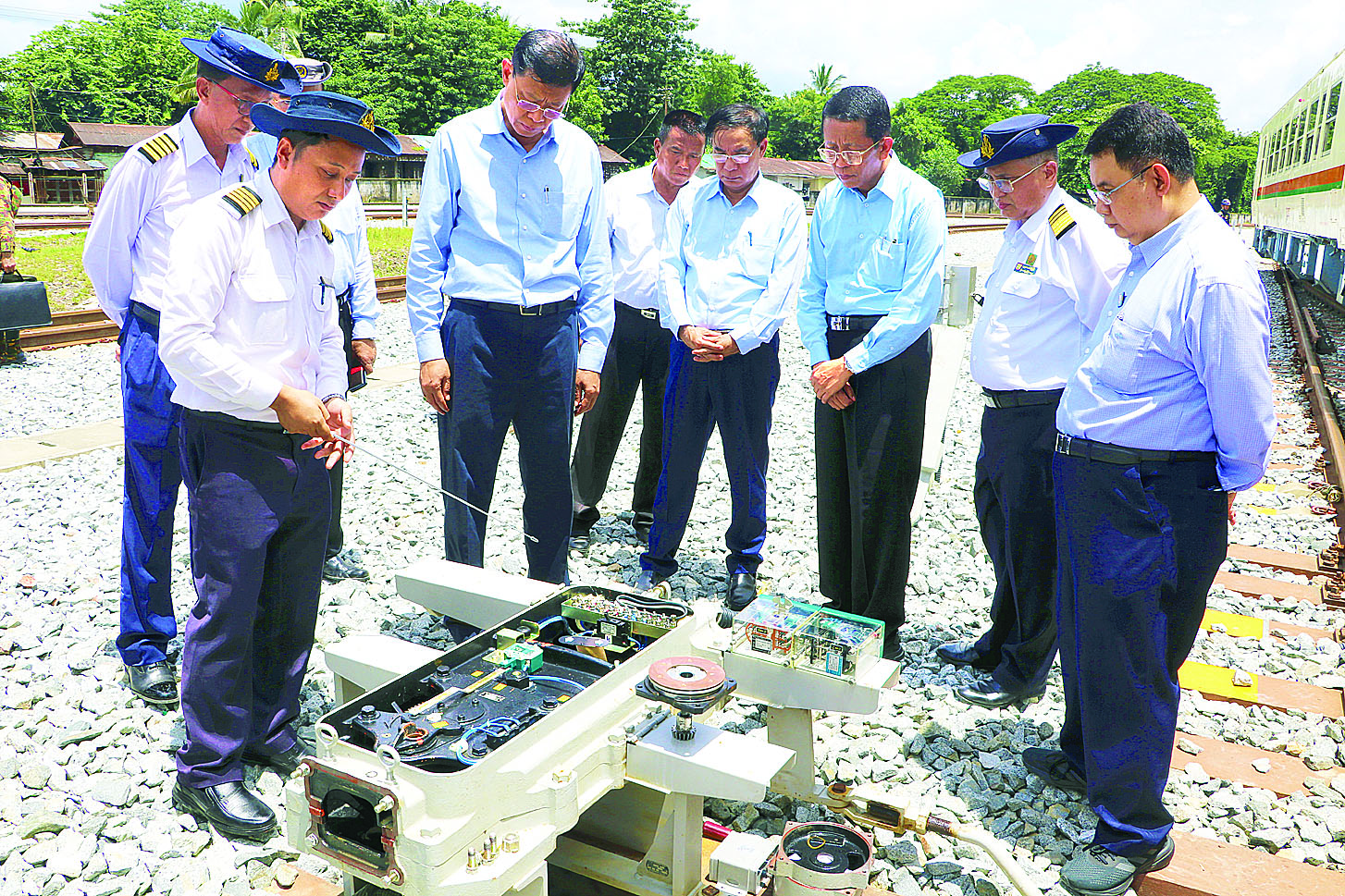ထို့နောက် မြန်မာ့မီးရထား ဦးဆောင်ညွှန်ကြားရေးမှူးနှင့် တိုင်းအဆင့်တာဝန်ရှိသူများကို ခရီးလမ်းတစ်လျှောက် ရထားလမ်းဘေးဝဲယာတွင် အမှိုက်များ ကင်းစင်ရေးကိစ္စ၊ ကျူးကျော်တဲများ ရှင်းလင်းရေးကိစ္စတို့ကို မှာကြားခြင်း၊ တိုးကြောင်ကလေးဘူတာတွင် ခရီးသည်အတက်/ အဆင်းများ စနစ်တကျဖြစ်ရေး မှာကြားခြင်း၊ ကျောက်တန်းဘူတာတွင် စီမံကိန်းအရ တပ်ဆင်ထားသော ရထားထိန်းချုပ်စေလွှတ်သည့် Relay Interlocking System ကိုင်တွယ်ထိန်းသိမ်းမှုကို စစ်ဆေးခြင်းတို့ကို ဆောင်ရွက်သည်။