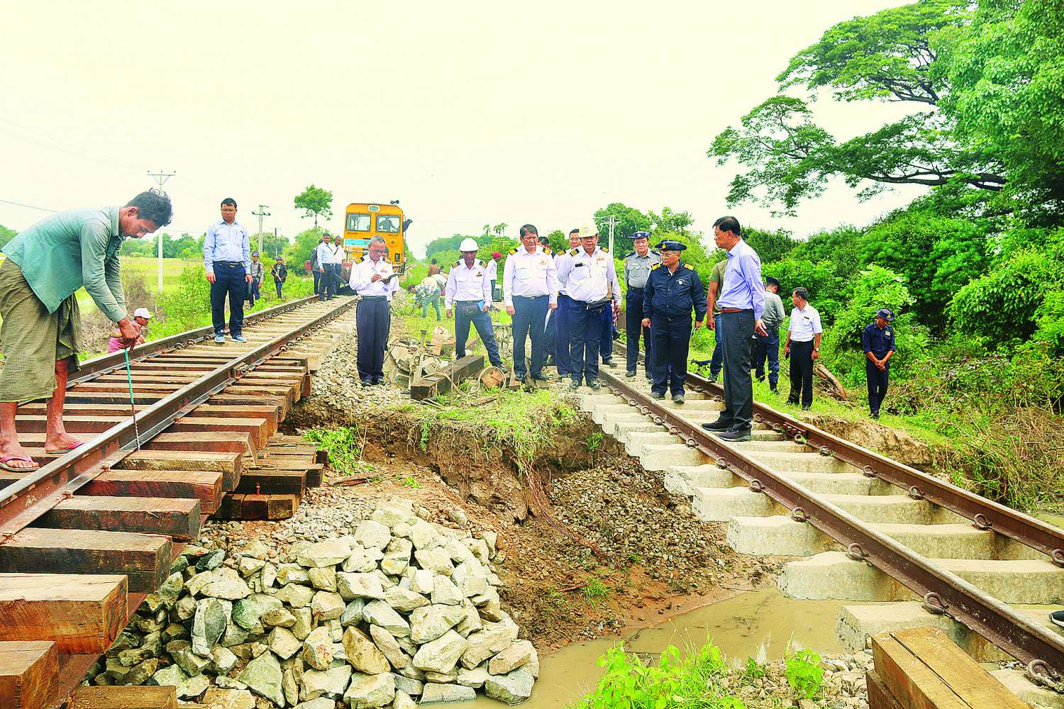 ဒုတိယဝန်ကြီးချုပ်နှင့် ပြည်ထောင်စုဝန်ကြီး ဗိုလ်ချုပ်ကြီး မြထွန်းဦး သဘာဝဘေးအန္တရာယ်ကြောင့် ရထားလမ်းနှင့် တံတားများ ပျက်စီးမှုနှင့် ပြန်လည်ပြုပြင်ဆောင်ရွက်မှုအခြေအနေများအား ကြည့်ရှုစစ်ဆေး
